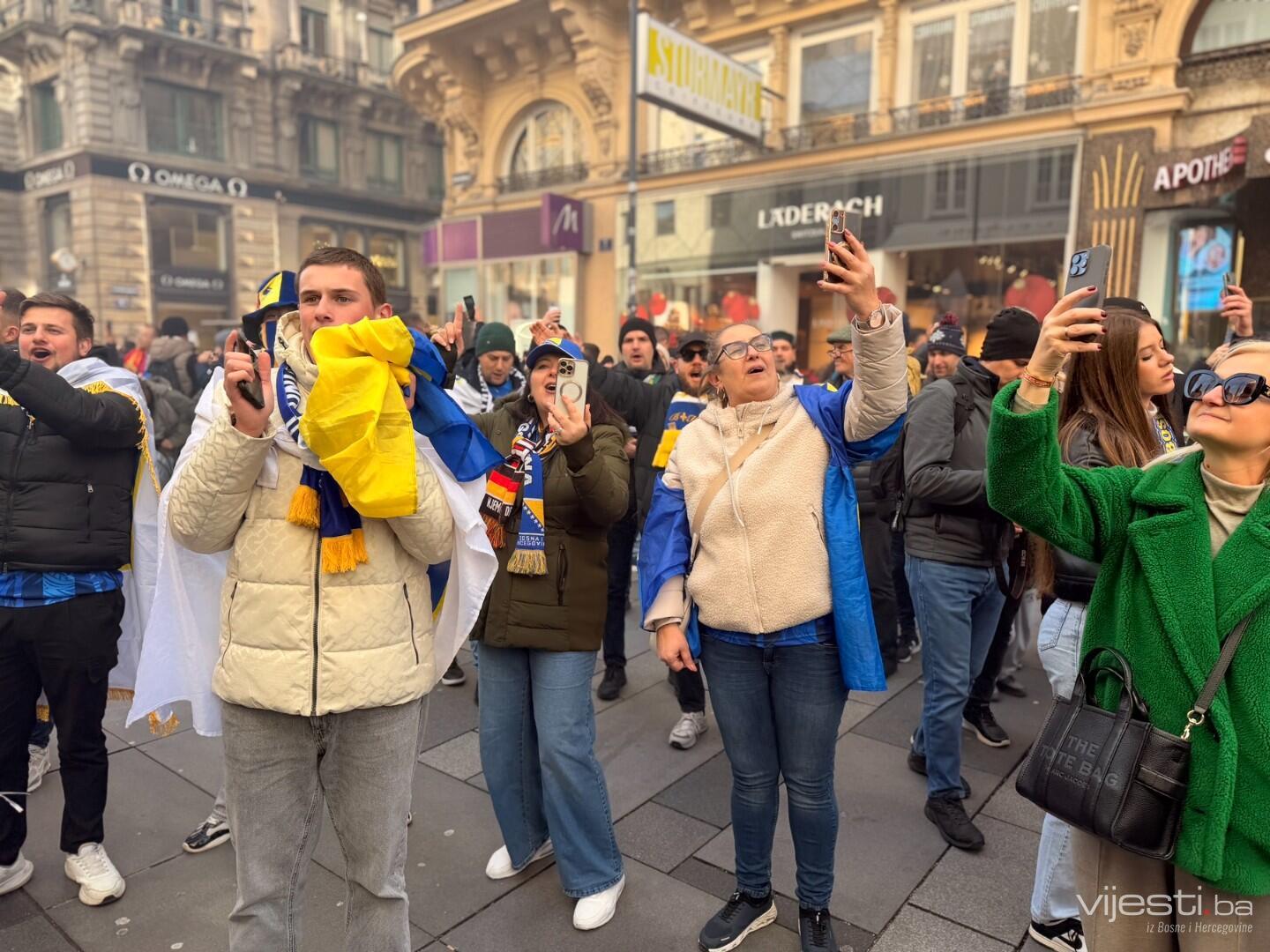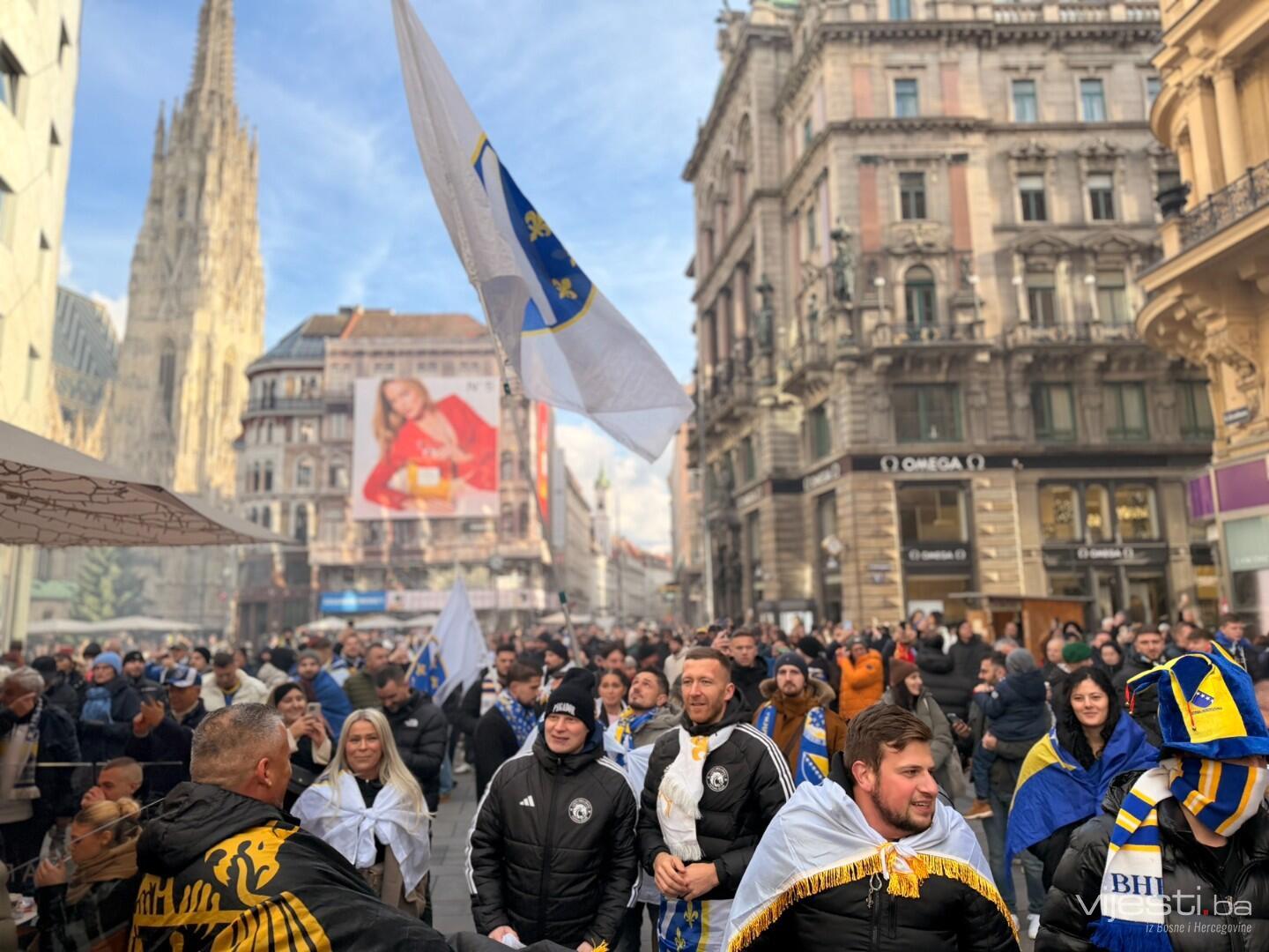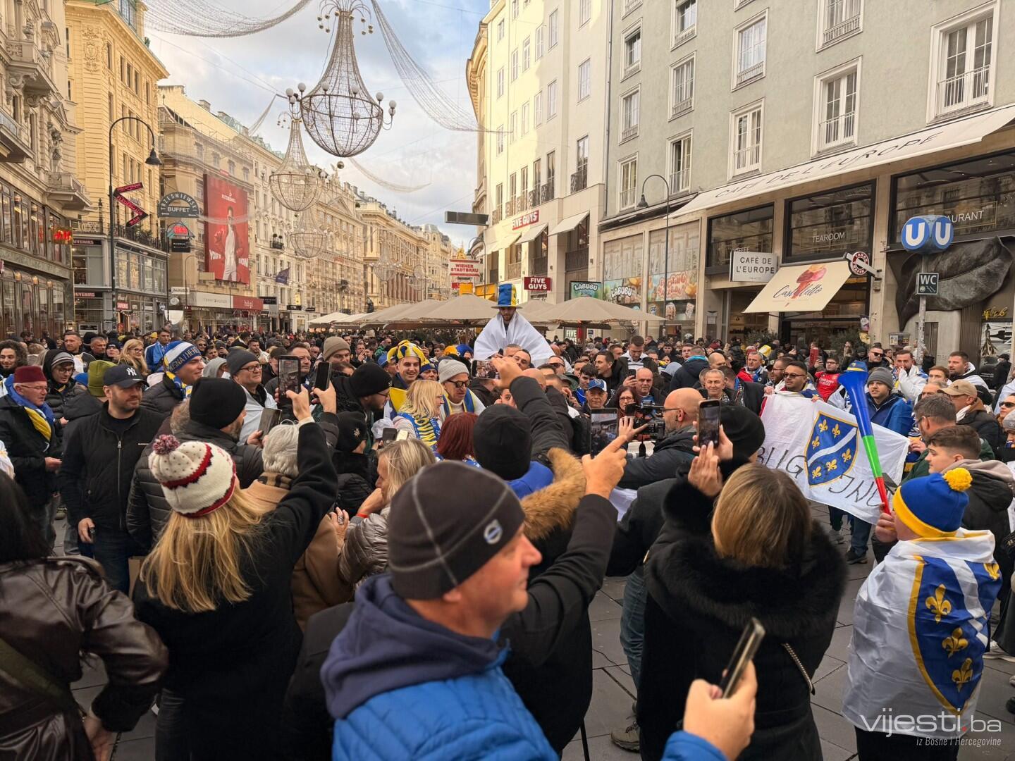 Ulica Stephansplatz pretvorena je u pravu sarajevsku Ferhadiju. Hiljade navijača Bosne i Hercegovine, naoružani državnim zastavama i zastavama s ljiljanima, preplavili su trgove i ulice.