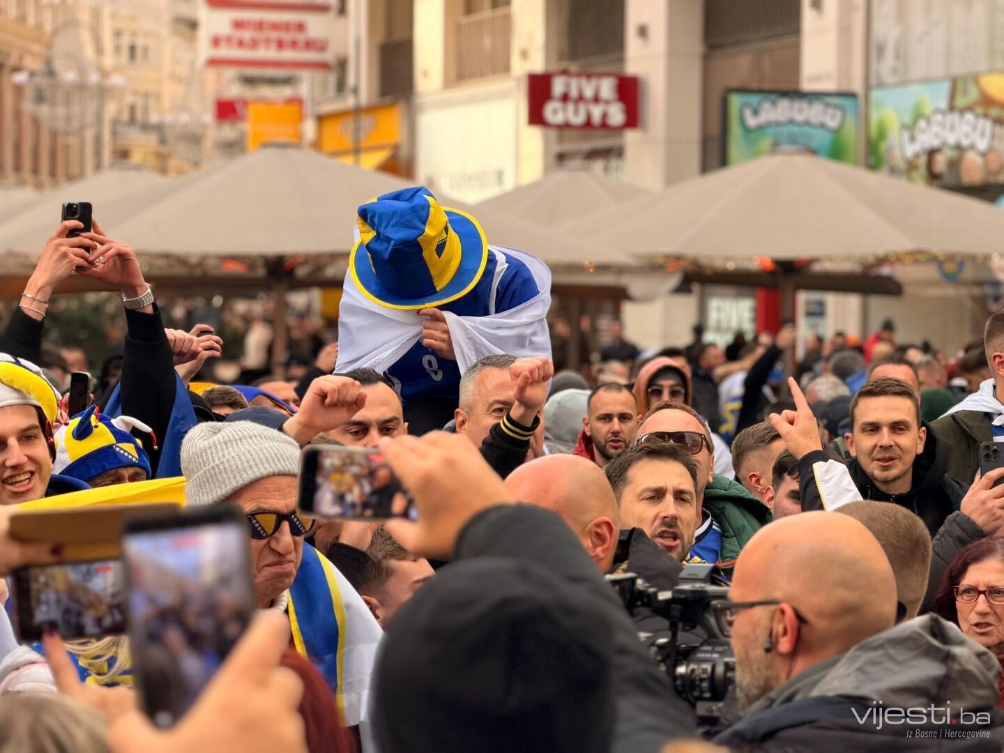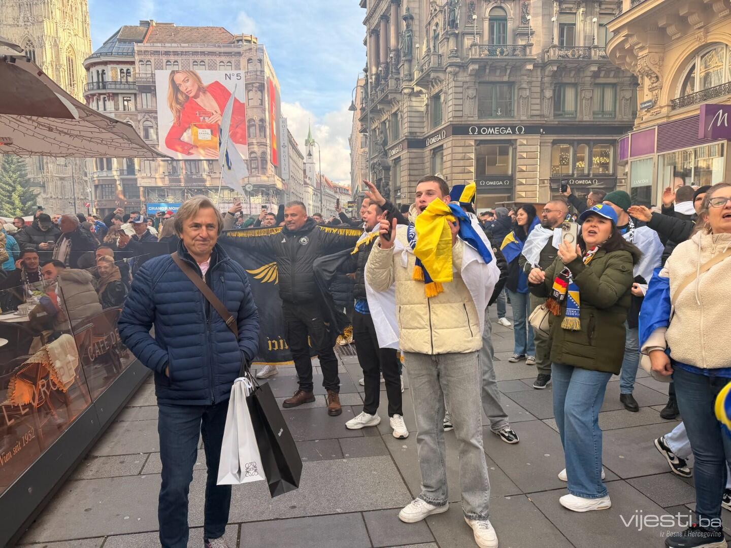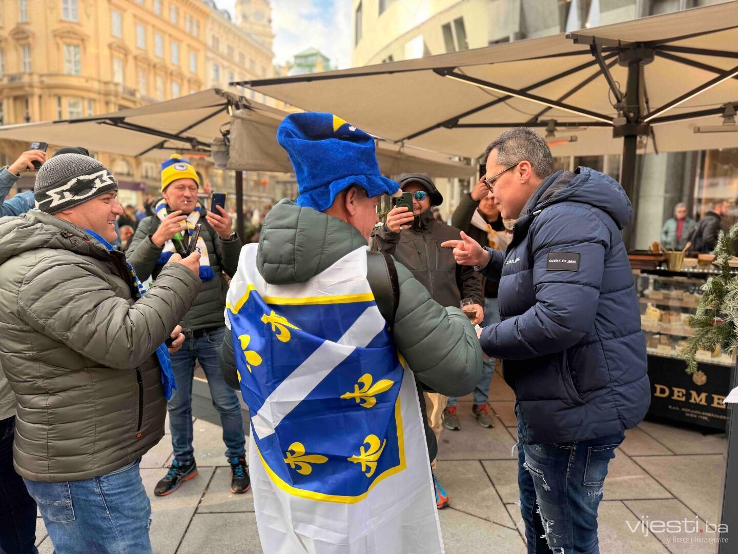 Ulica Stephansplatz pretvorena je u pravu sarajevsku Ferhadiju. Hiljade navijača Bosne i Hercegovine, naoružani državnim zastavama i zastavama s ljiljanima, preplavili su trgove i ulice.