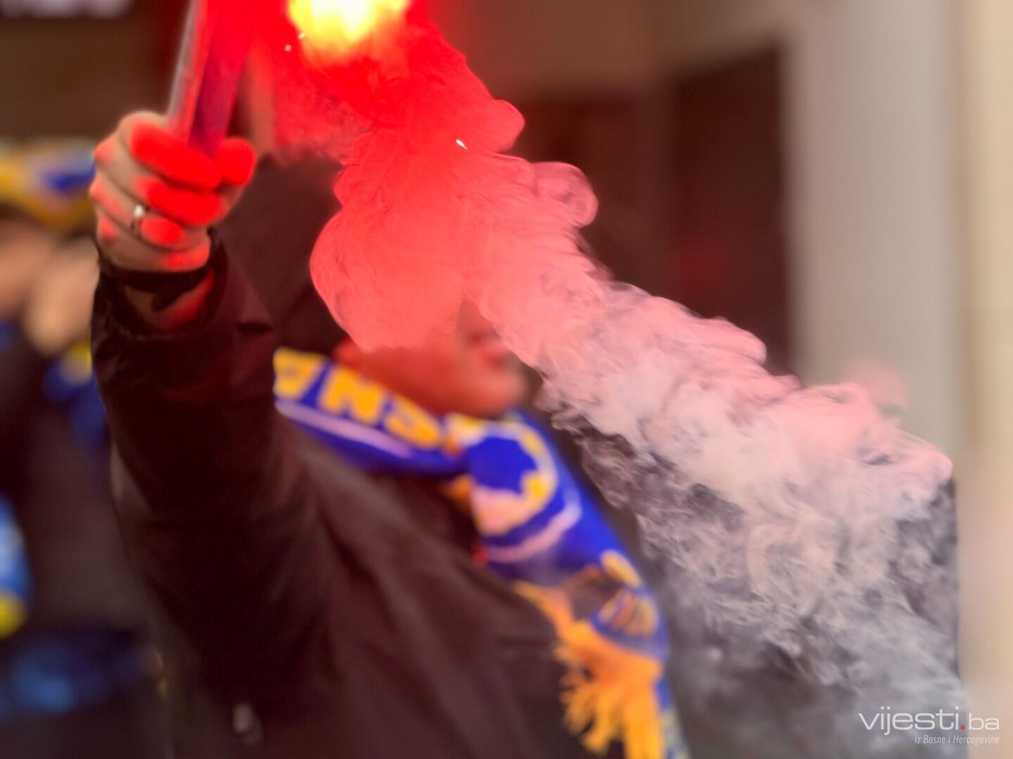Pjevaju se naše pjesme, od himne do sevdalinki, atmosfera je razigrana, emotivna bosanska.
