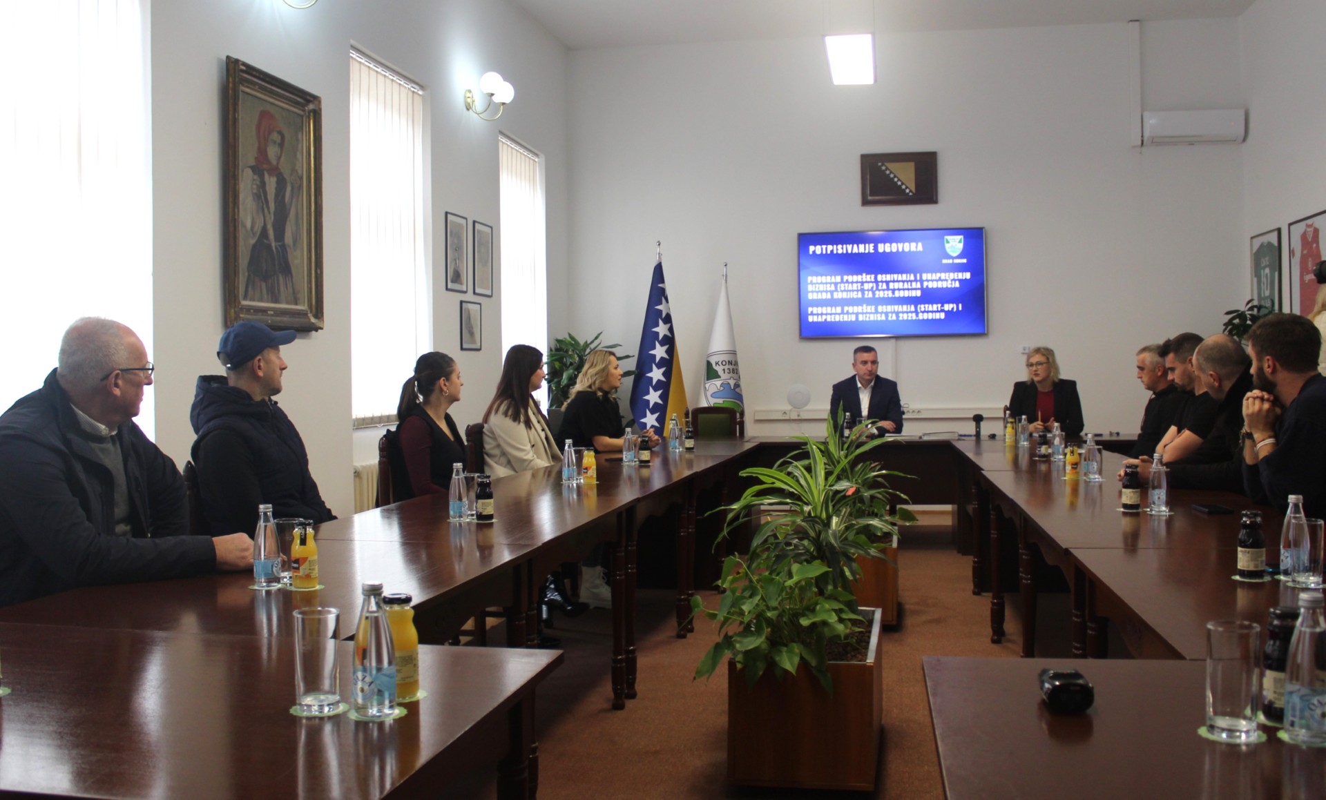 U sklopu aktivnosti kojima Grad Konjic obilježava Dan državnosti Bosne i Hercegovine, danas je u sali Gradske uprave Konjic gradonačelnik Konjica Osman Ćatić potpisao ugovore sa 14 korisnika programa podrške osnivanja i unapređenja biznisa za ruralna područja i programa podrške u osnivanju i unapređenju biznisa za 2025.godinu namjenjenih mladima.