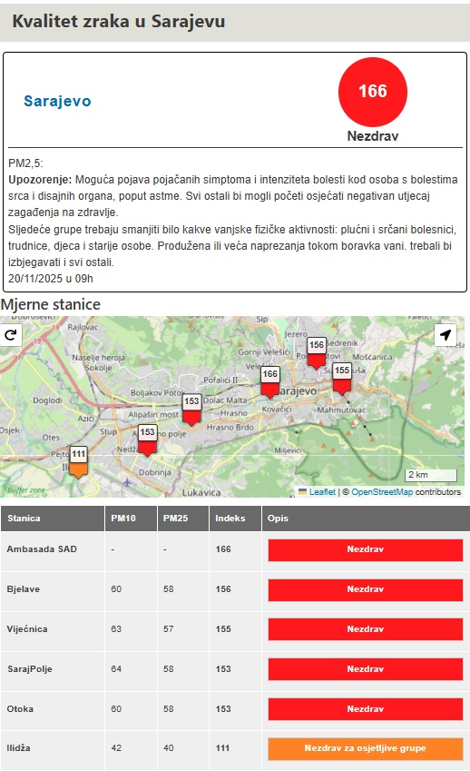 Poručuju da nema mjesta za paniku jer su vrijednosti polutanata ispod granica za proglašenje bilo koje epizode upozorenja ili uzbune u Kantonu Sarajevo, a situacija nije zabrinjavajuća kako je predstavljeno u pojedinim medijima.