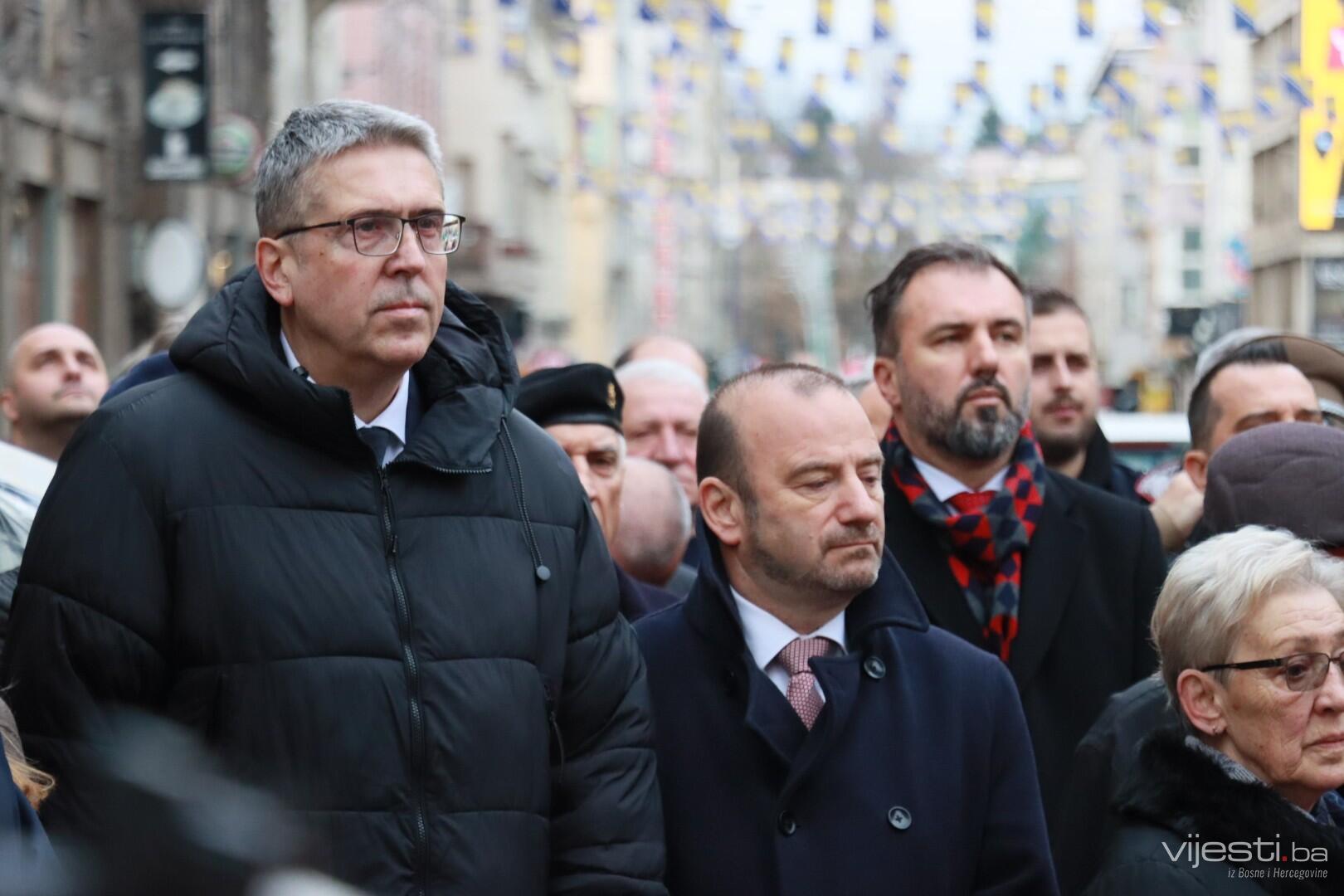 Obilježavanje 25. novembra - Dana državnosti Bosne i Hercegovine, počelo je jutros podizanjem državne zastave na sarajevskom brdu Hum, uz intoniranje državne himne Bosne i Hercegovine.