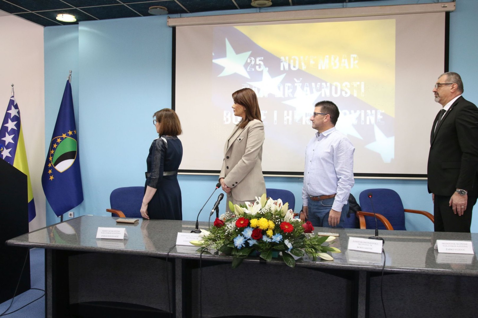 Delegacije Vlade i Skupštine Tuzlanskog kantona, predvođene premijerom Irfanom Halilagićem i predsjedavajućim Skupštine Žarkom Vujovićem, položile su cvijeće i odale počast na Spomeniku tuzlanskim brigadama Armije RBiH, Partizanskom spomen obilježju, Spomeniku poginulim Zlatnim ljiljanima, Spomeniku poginulim braniteljima Tuzle i Bosne i Hercegovine 1992 – 1995. godine, te na mezarju/groblju civilnih žrtava i Spomen obilježju poginule mladosti.
