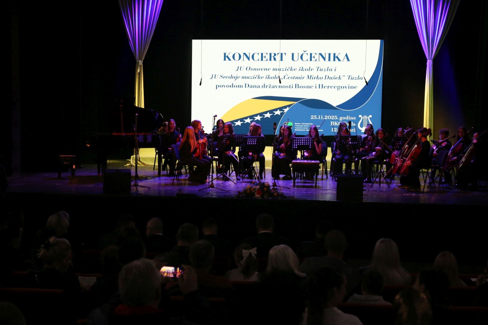 Svečano obilježavanje Dana državnosti BiH u Tuzlanskom kantonu danas je završeno svečanim koncertom Osnovne i Srednje muzičke škole.