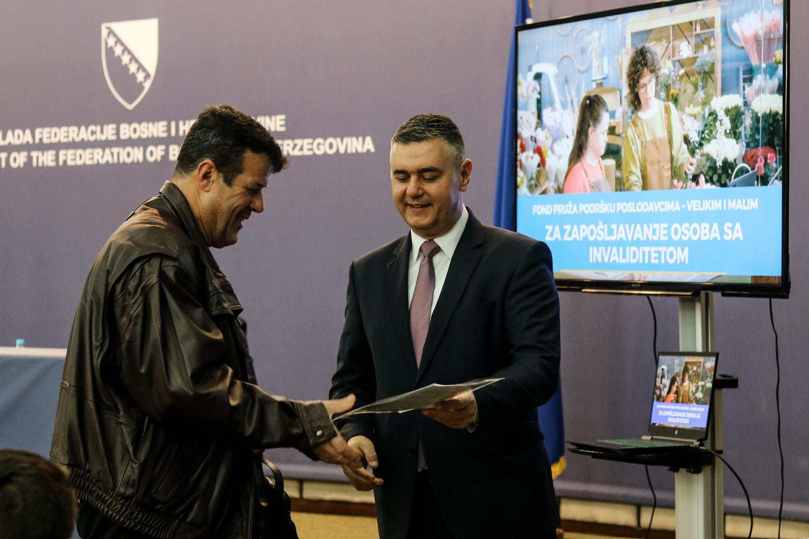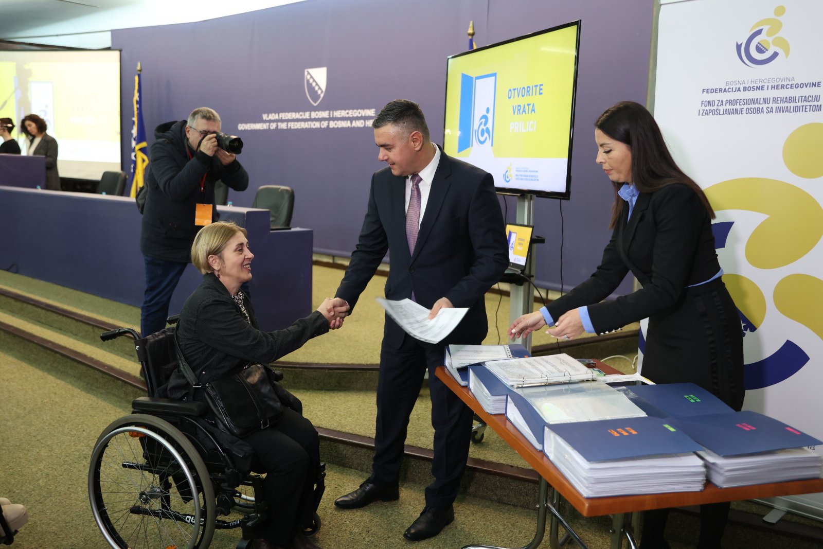 Danas je održana svečana ceremonija uručenja ugovora korisnicima koji su ispunili uslove javnih poziva Fonda za profesionalnu rehabilitaciju i zapošljavanje osoba s invaliditetom.