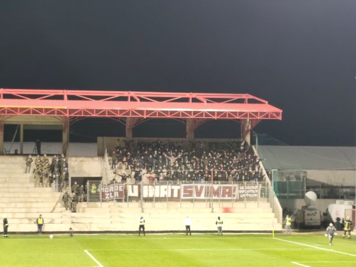 Utakmicu prati nekoliko hiljada gledalaca, a tu su od prve minute i najvatreniji navijači Sarajeva. Popularne Horde zla nalaze se na novoizgrađenoj tribini.