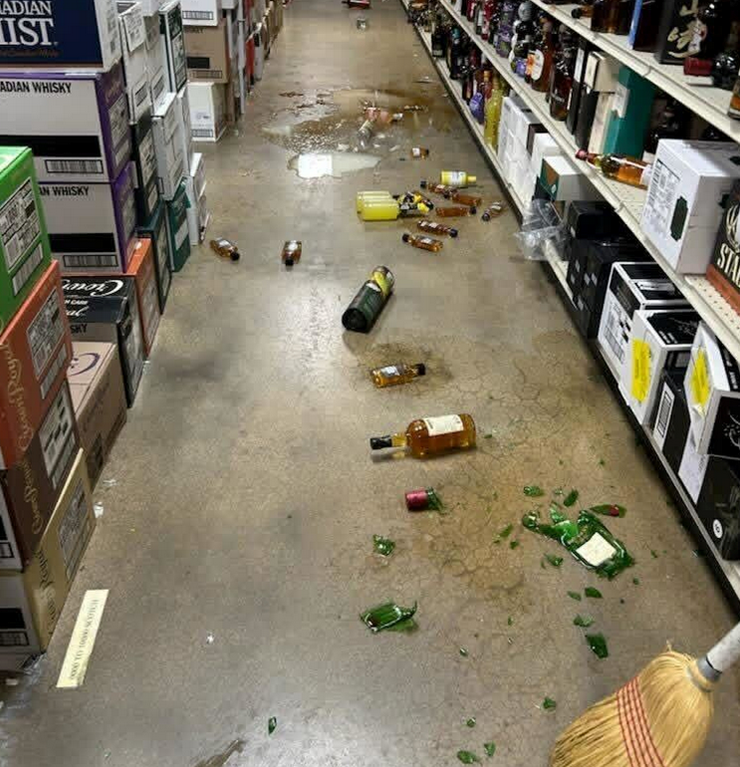 Zaposlenik prodavnice koji je došao na posao zatekao je prizor kao iz filma: razbijene boce, proliveni alkohol i srušena stropna ploča. Glavni osumnjičenik spavao je snom pravednika na podu toaleta. Ubrzo je pozvana lokalna služba za kontrolu životinja, a na teren je izašla službenica Samantha Martin.