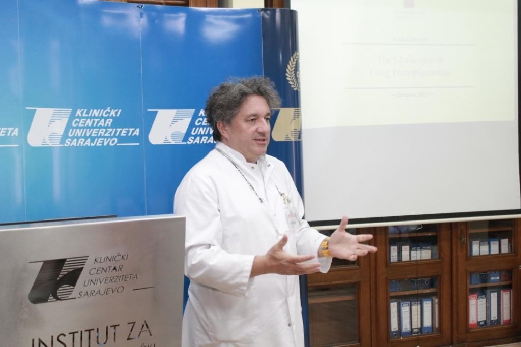 Prof. dr. Štupnik je u sklopu posjete održao predavanje o transplantaciji pluća te izazovima s kojima se susreću medicinski timovi uključeni u ovaj kompleksni medicinski proces. On je naglasio da je u Sloveniji prva transplantacija jednog plućnog krila realizirana 2003. godine, nakon čega je transplantacijski program ponovo uspostavljen 2018. godine, a od tada se u Sloveniji na dva miliona stanovnika godišnje obavi 10 do 15 transplantacija pluća.
