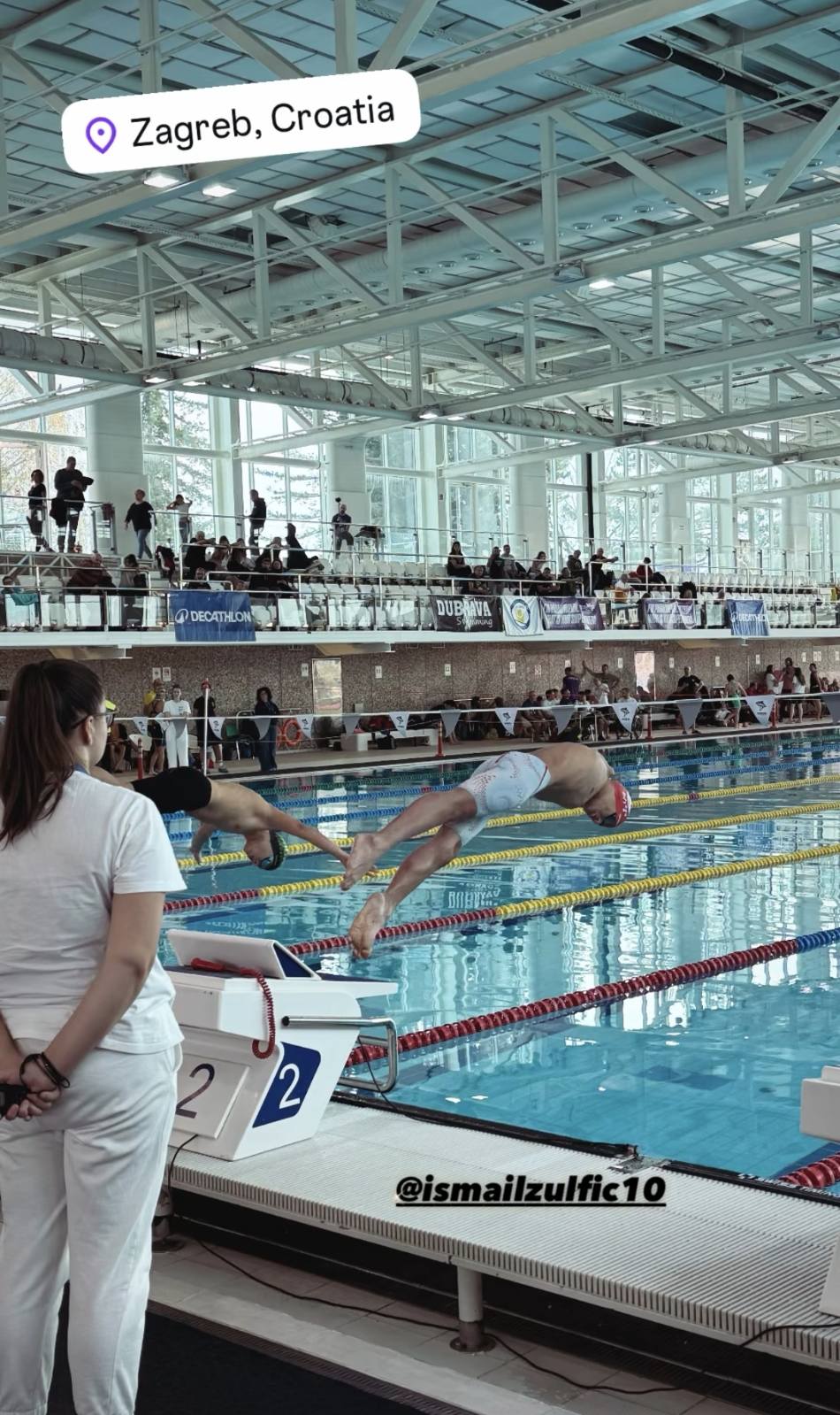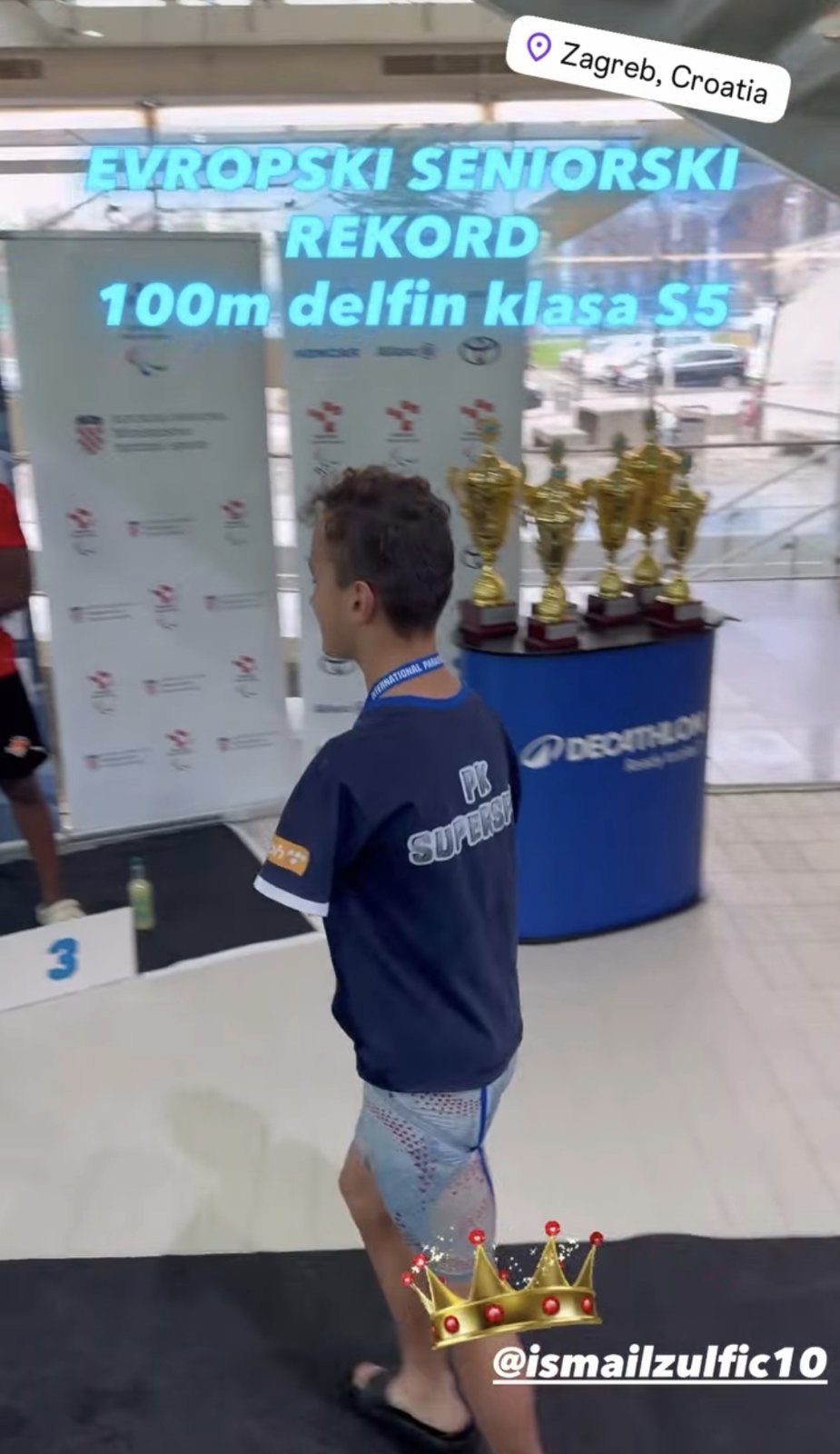 Oborio je evropski seniorski rekord u disciplini 100 metara delfin, klasa S5, na prestižnom međunarodnom takmičenju u Zagrebu, glavnom gradu Hrvatske.
