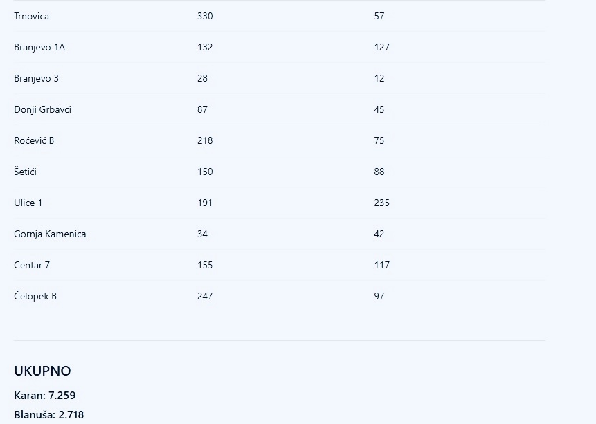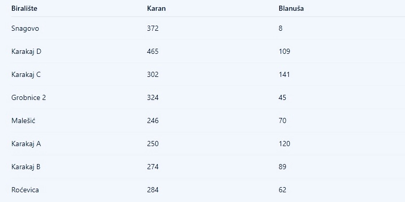 Samo u ova tri grada, odnosno na ovaih 49 spornih birališta, Karan je osvojio preko 11 hiljada glasova, a Blanuša tek oko 3.800, što je razlika od oko 7.200 glasova.