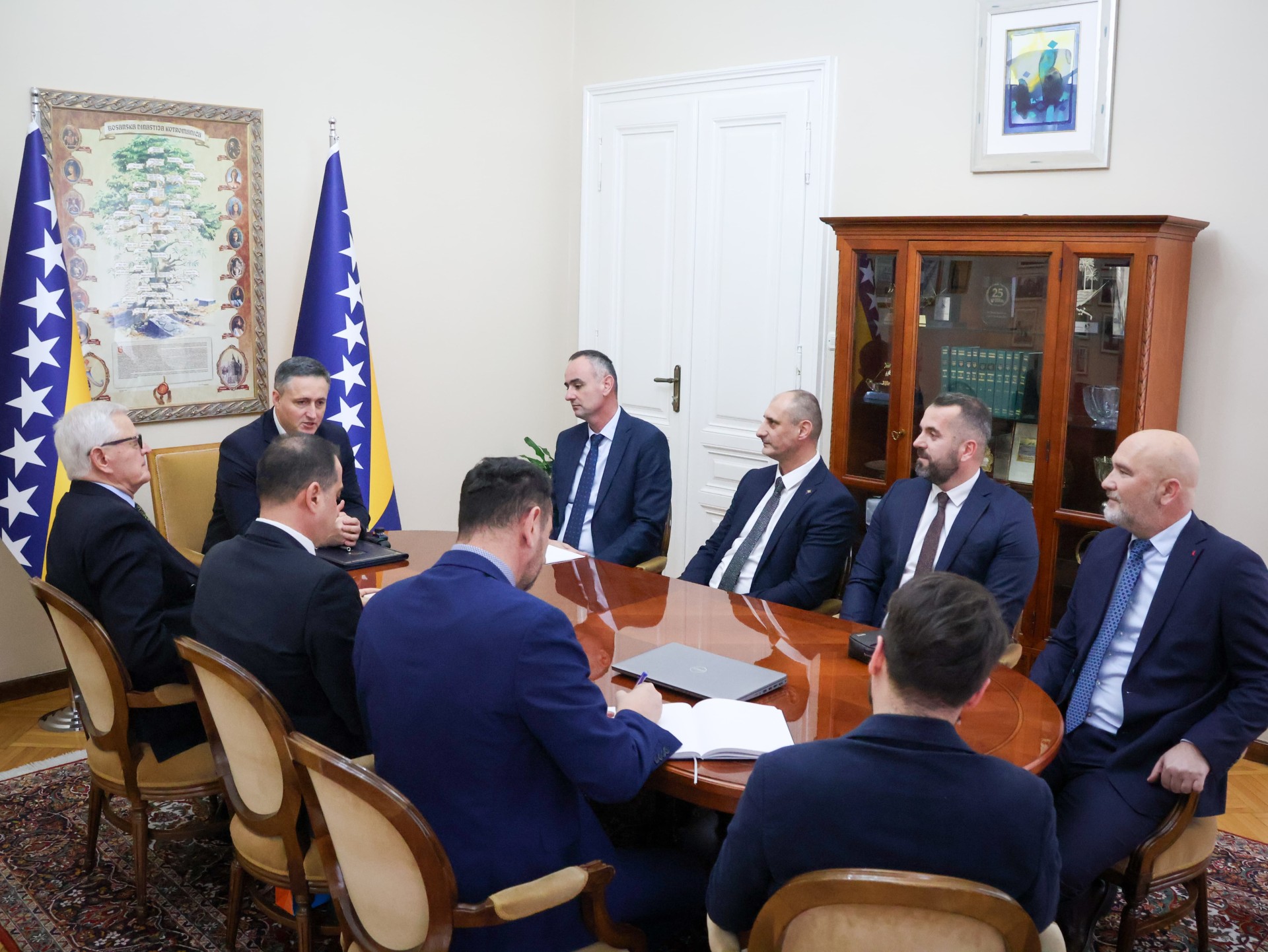 Član Predsjedništva BiH dr. Denis Bećirović razgovarao je s delegacijom Kluba vijećnika Bošnjaka u Gradskom vijeću Mostara, koju su činili: predsjednik Gradskog vijeća grada Mostara Đani Rahimić, predsjednik Kluba vijećnika Bošnjaka Mirza Drežnjak, te vijećnici Enis Čamo i Sanjin Hadžiomerović.