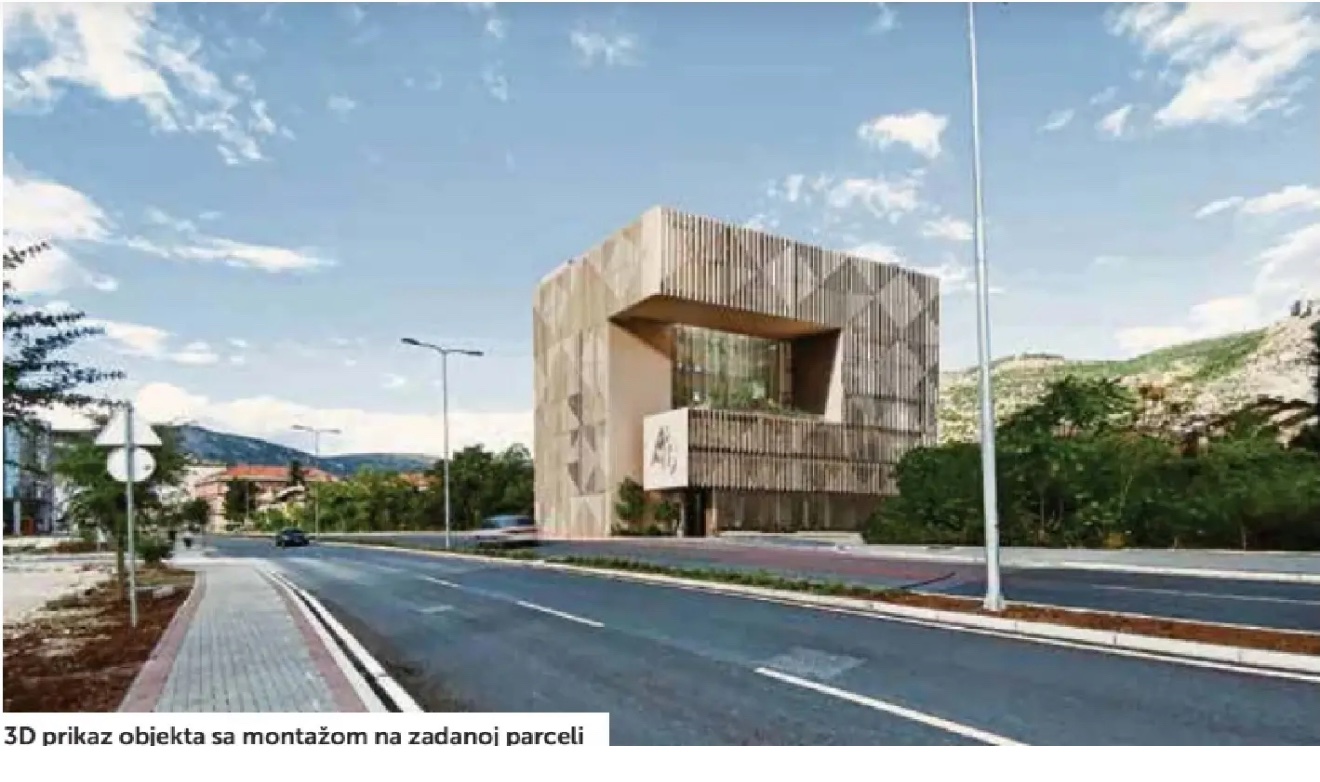 Kako u Mostaru, kojeg znamo kao najtopliji grad, napraviti kuću koja sama sebi pravi hlad, da ima zastakljene, savremene poslovne prostore, ali na koje sunce ne pada? Da ispred ima zaštitnu membranu, koja svojom romboidnom formom podsjeća na kamene krovne ravni Mostara?