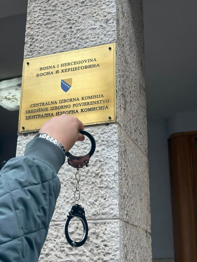 Aktivisti organizacije ReStart Srpska su ispred zgrade Centralne izborne komisije u Sarajevu održali performans.