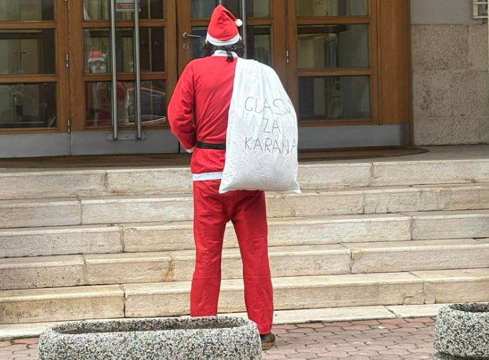 Aktivista koji je glumio Deda Mraza donio je “vreću punu glasova” za Sinišu Karana, kandidata SNSD-a.