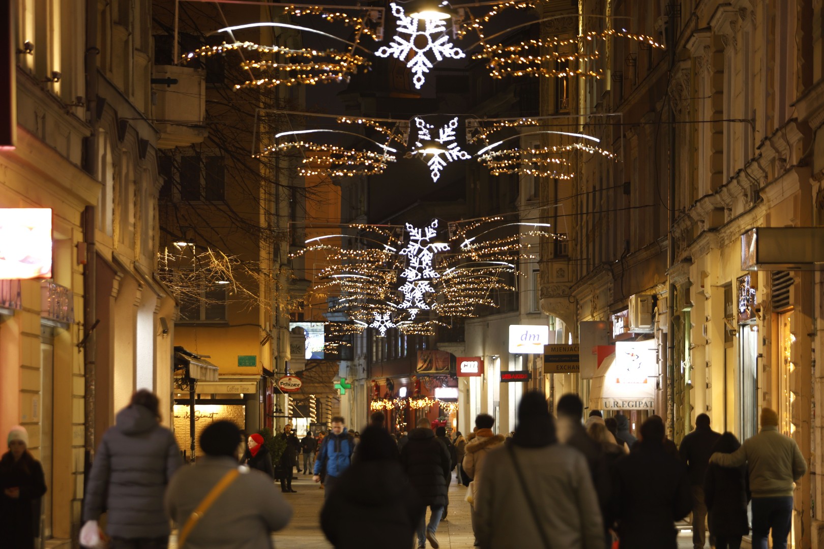 Zbog svjetlosnih efekata, praznično ukrašavanje grada posebnu dimenziju dobija u večernjim satima.