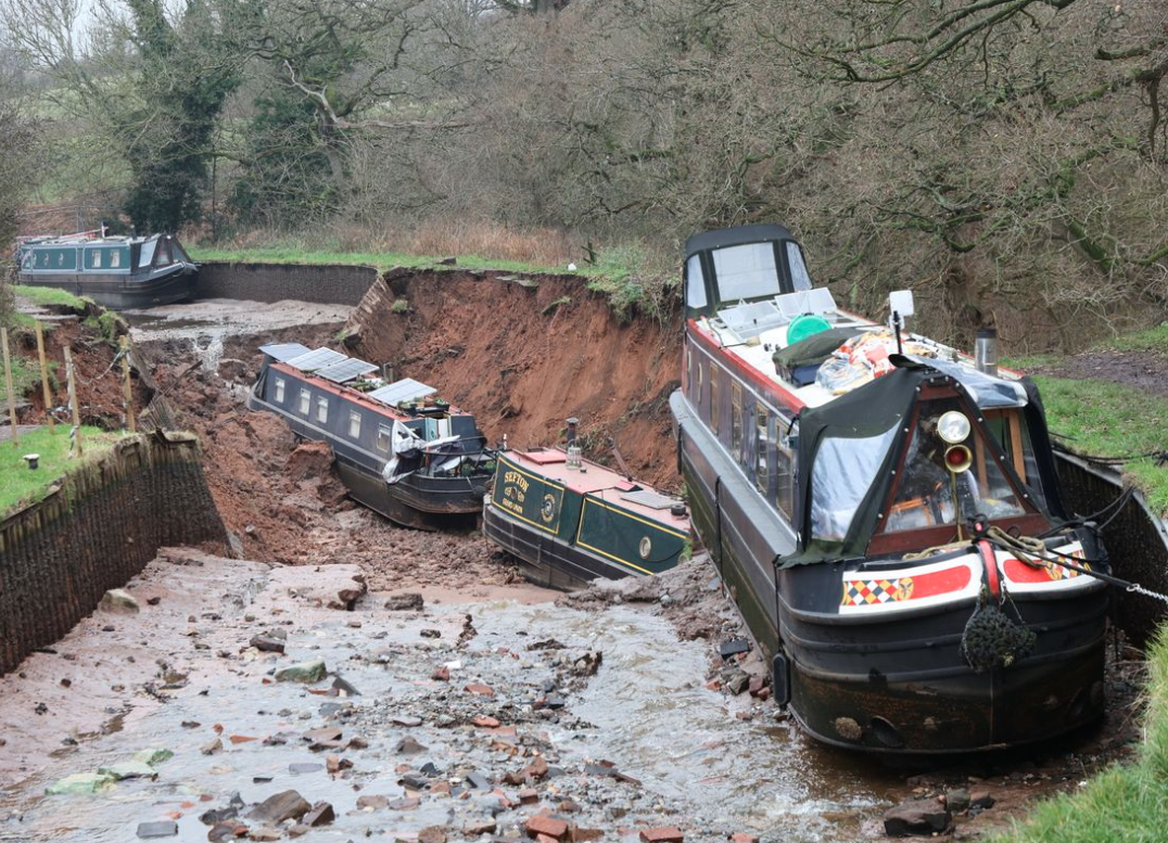 Zapanjujući video, koji je pregledan više od 131.000 puta, snimljen usred haosa prikazuje brod kako se prevrće preko vrtače, a drvo se lomi u kanalu Langolen u Whitchurchu, u Shropshireu u Engleskoj.
