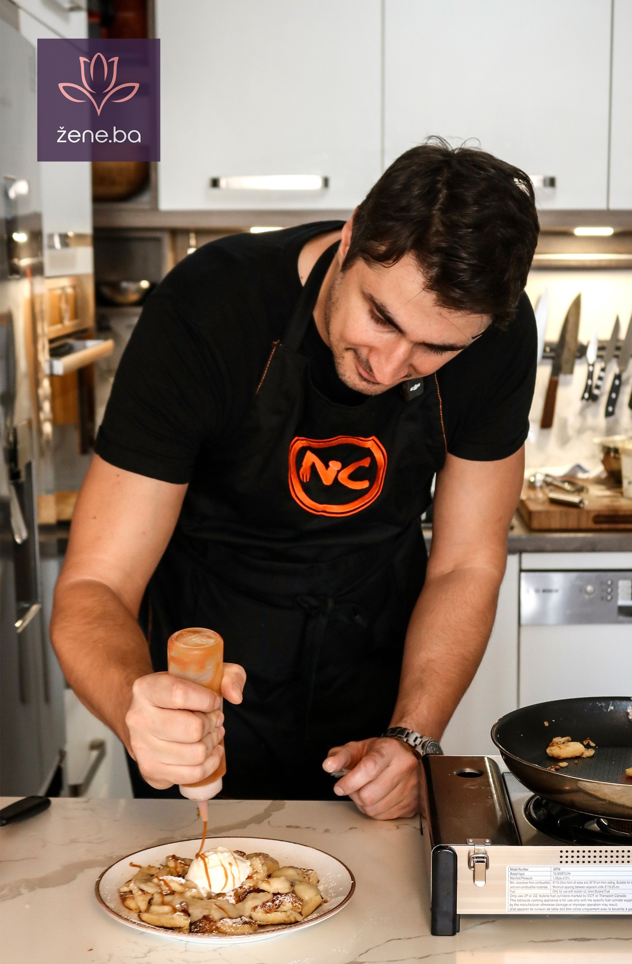 Posebna priča je i sos od jabuka, koji je Neno pripremao paralelno – jednostavan, ali bogat, s naglašenom aromom vanilije i prirodnom slatkoćom jabuka. U kombinaciji s lagano karameliziranim komadima palačinke i puterom, ovaj sos podiže desert na potpuno novi nivo.