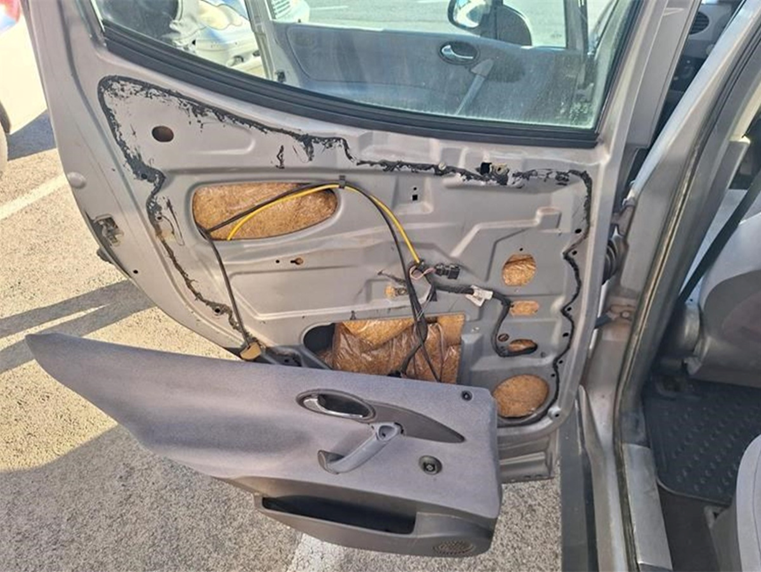 Kako bi izbjegao otkrivanje, vozač je duhan sakrio na više mjesta u vozilu – u vratima, prtljažniku, prostoru za rezervni točak, kao i u podvozju automobila.