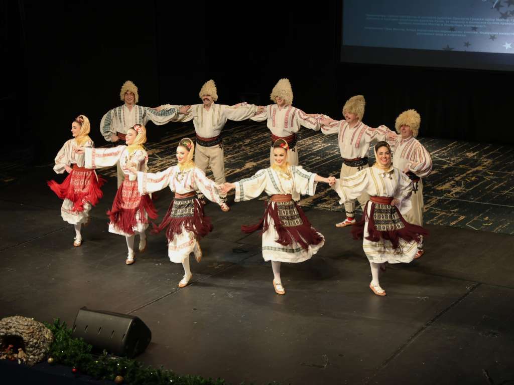 Na Božićnom koncertu nastupilo je Akademsko kulturno-umjetničko društvo Univerziteta u Beogradu "Španac“, a publika je imala priliku uživati u bogatom i raznovrsnom repertoaru koji obuhvaća Vlaške igre, igre iz Šumadije, Šopske igre, igre iz jugoistočne Srbije, Ciganske igre iz Vojvodine, Vranjansku svitu, kao i nastupe vokalnih solista.