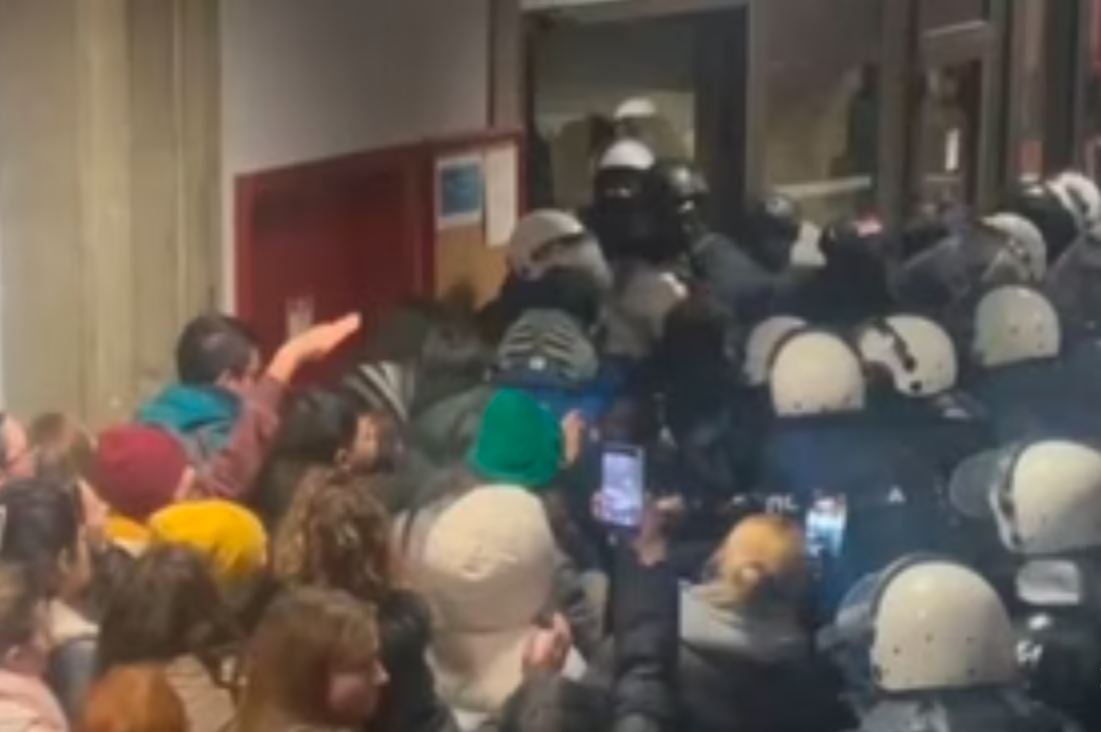 Jake snage policije su večeras nasilno izbacile studente i profesore sa Filozofskog fakulteta, koji su objavili blokadu istog nakon što je profesorki Jeleni Kleut uručeno rešenje o prestanku radnog odnosa.