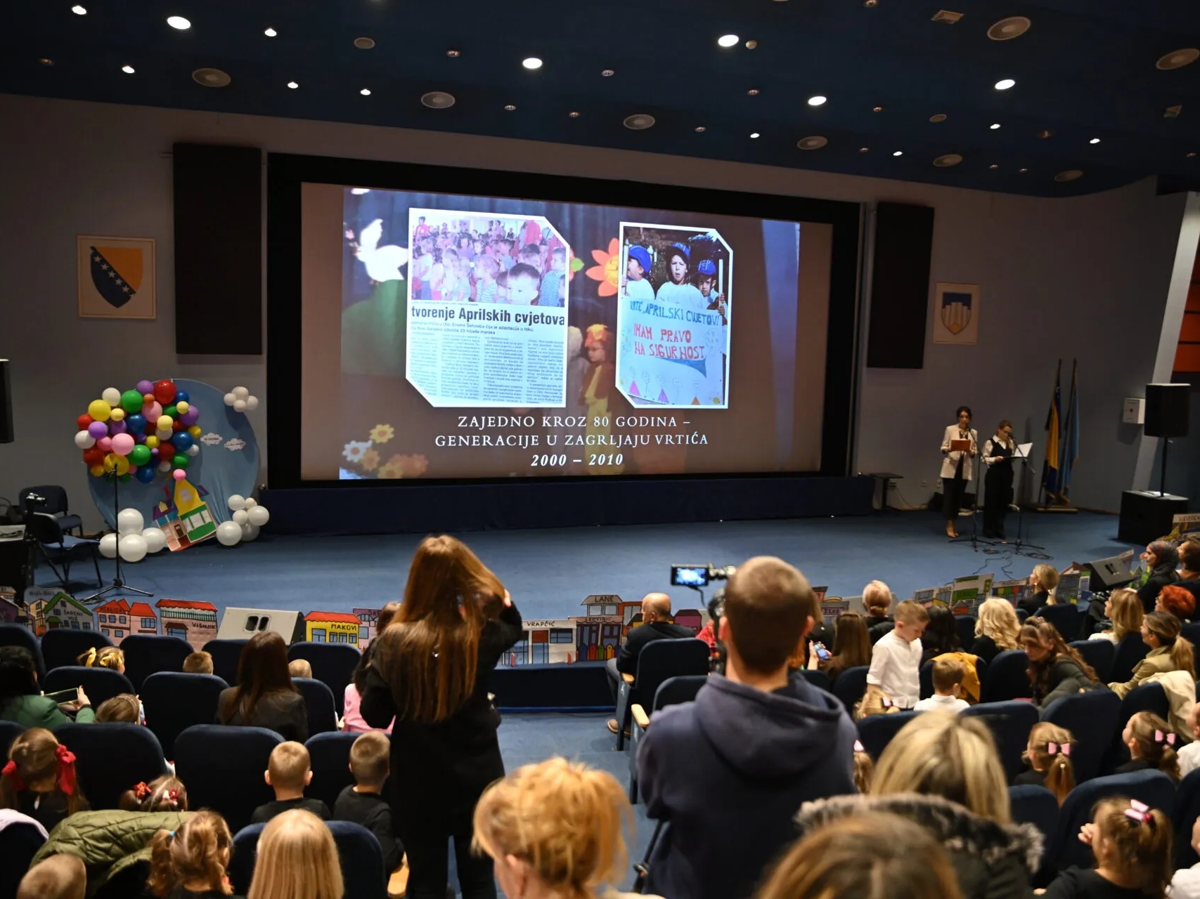 U kino sali Općine Novi Grad, održana je svečanost „Zajedno kroz 80 godina – generacije u zagrljaju vrtića“, povodom velikog jubileja JU “Djeca Sarajeva”. Mališani iz vrtića „Dunje“, „Lastavica“, „Vjeverica“, „Srećica“, „Biseri“, „Skenderija“, „Trešnjica“, „Razigrani dani“, „Kekec“, „Mašnica“ i Obavezni program, okupili su se kako bi poklonili ono najljepše- osmijehe, pjesmu, ples, prijateljstvo i ogromno dječije srce.