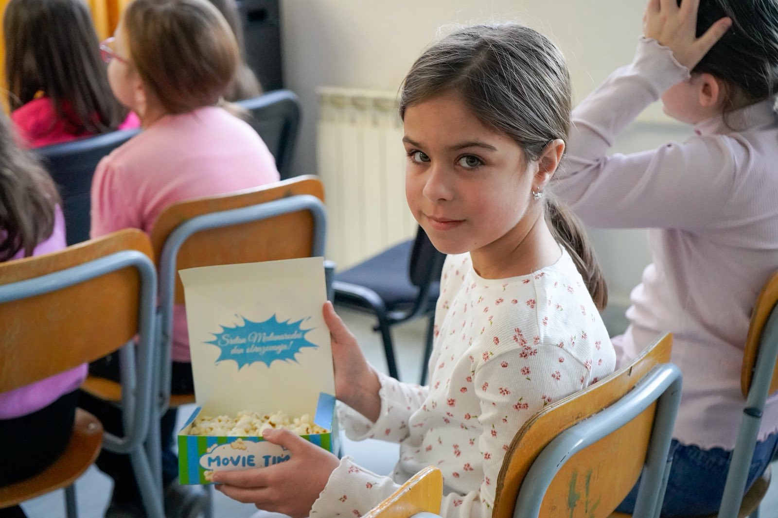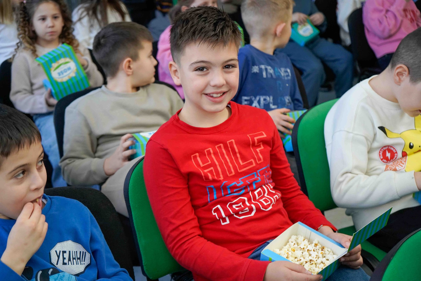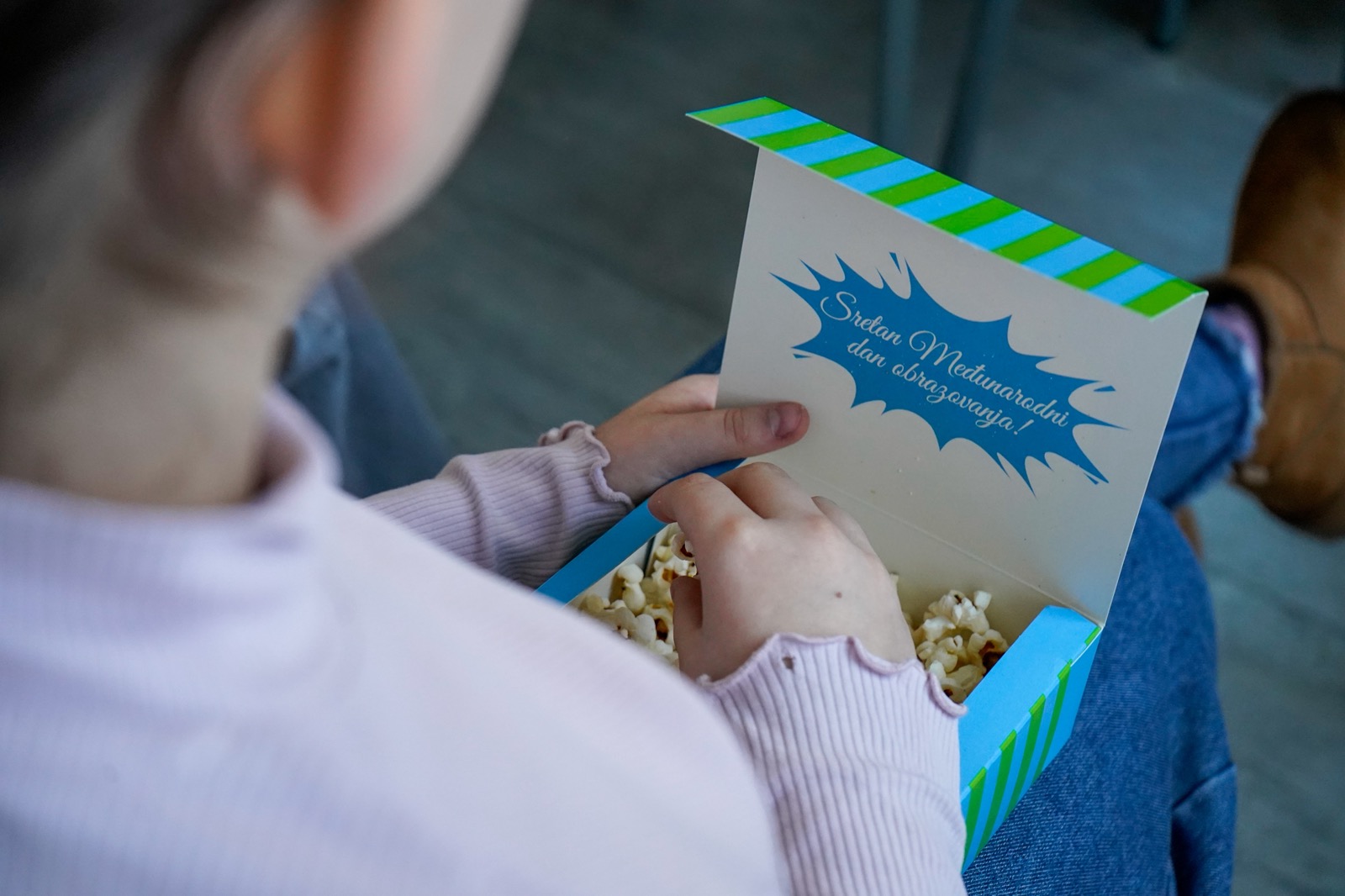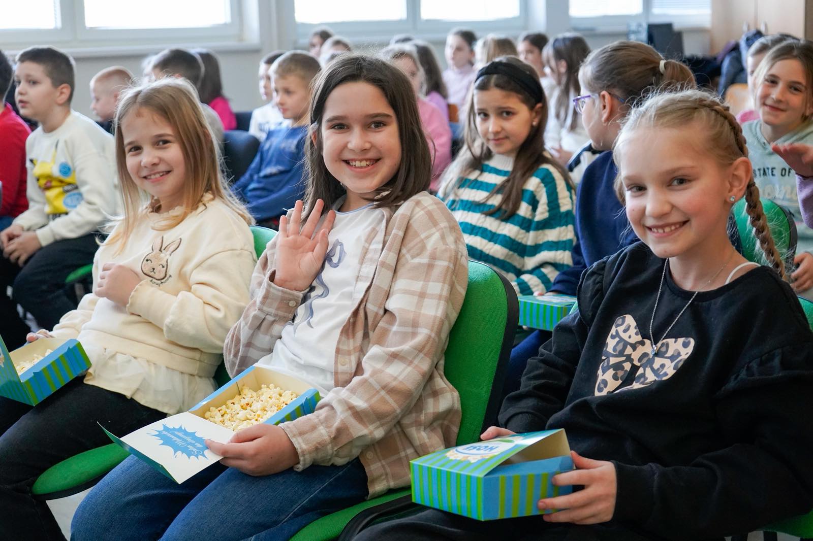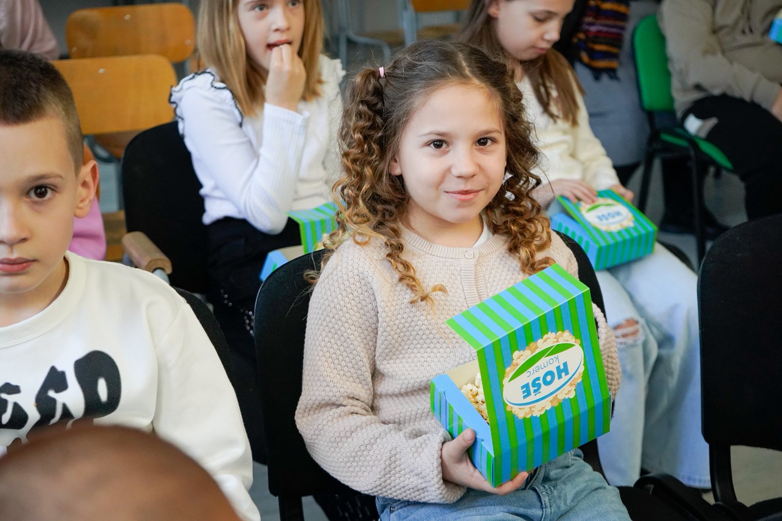 Kompanija je ovom prilikom donirala projektno platno i projektor, a početak škole upotpunjen je zajedničkim gledanjem filma i kokicama, jer učenje može i treba biti i zabavno.