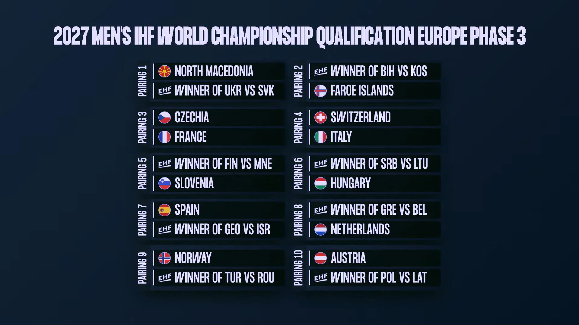 Mečevi baraža igrat će se 13. ili 14. i 16. ili 17. maja 2026. godine.