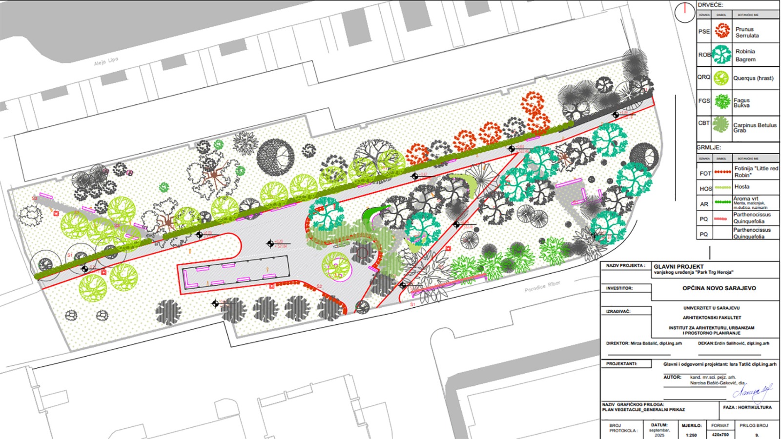 Direktorica firme 'Mibral' d.o.o. Sarajevo Maja Bralović Smith naglašava da se taj projekt vanjskog uređenja Parka Trga heroja sastoji od nekoliko faza, a koristit će ekološki prihvatljive materijale. Značajan dio tog parka činit će zelenilo, to mu dodatno daje na značaju.