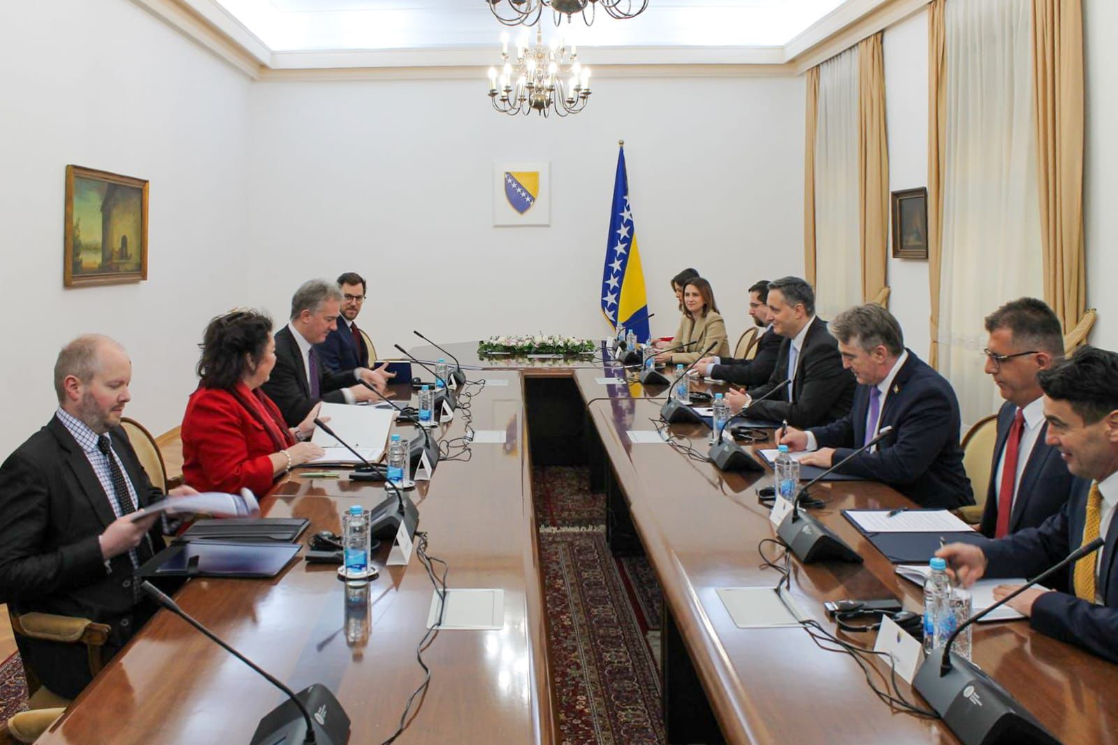 Predsjedavajući Predsjedništva BiH Komšić i član Predsjedništva BiH dr. Bećirović su izrazili zahvalnost na kontinuiranoj podršci Ujedinjenog Kraljevstva i ličnom angažmanu specijalne izaslanice Pierce u jačanju ukupnih odnosa i prijateljske saradnje.