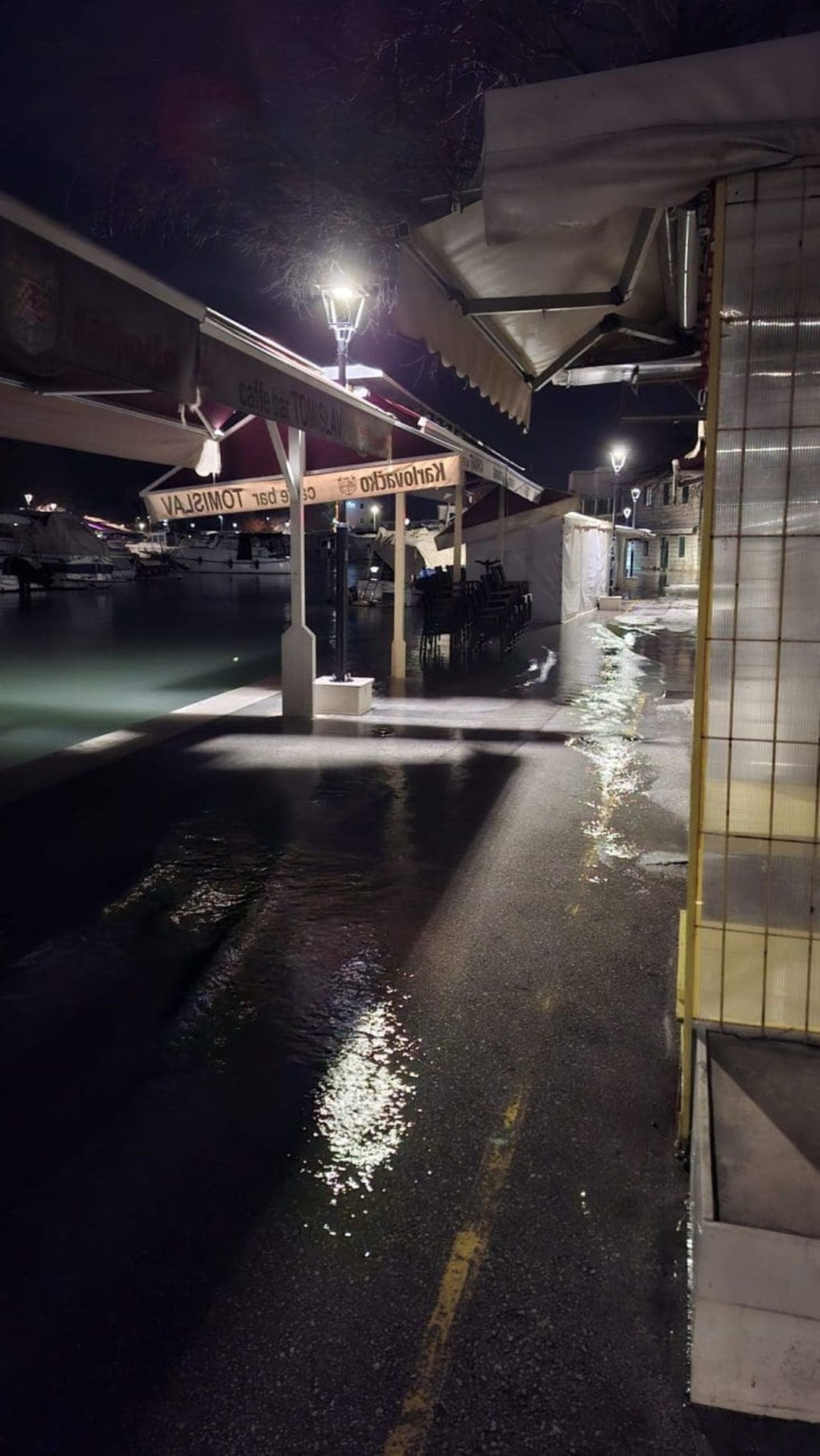 Posebno teška noć bila je u Kaštelima, gdje se more izlilo na rivu i poplavilo okolne ulice.
