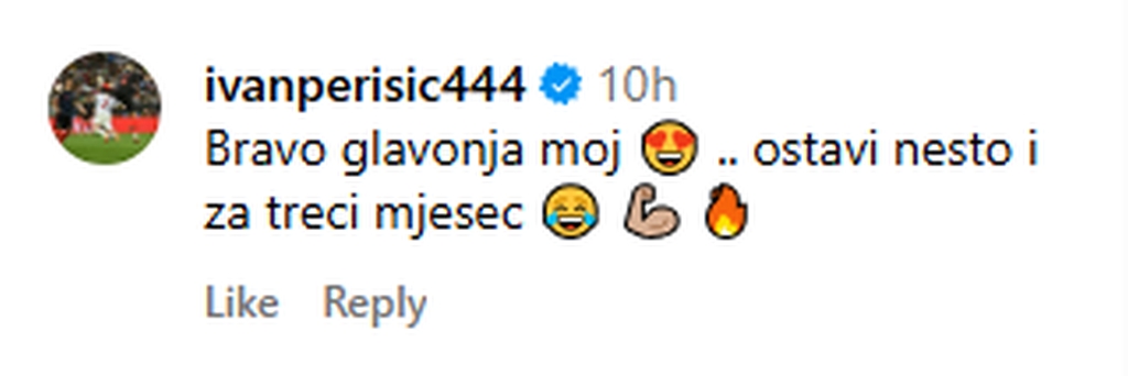"Bravo, glavonja moj. Ostavi nešto i za treći mjesec", poručio je Perišić.
