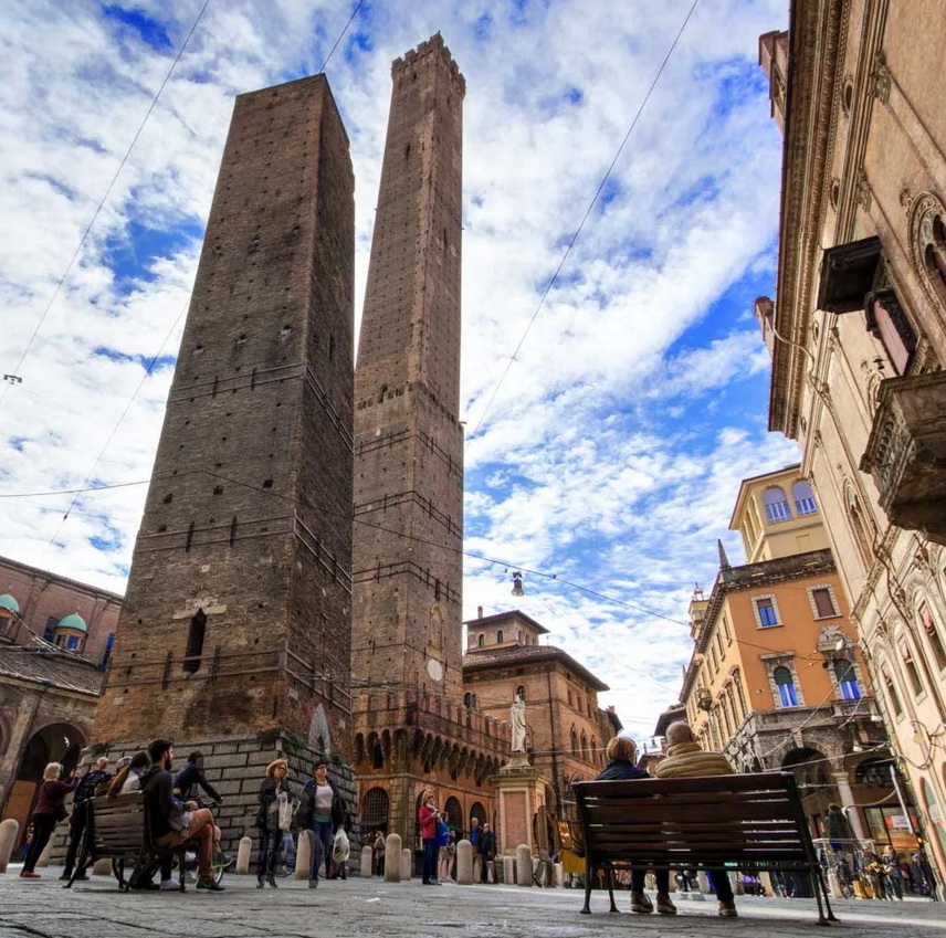 Otprilike dva sata od Pise, sjevernotalijanski grad Bologna u svom historijskom centru ima dvije upečatljive srednjovjekovne kule.