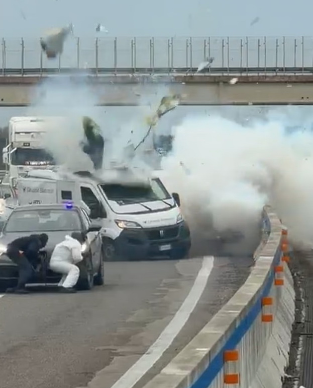 Meta napada bilo je vozilo kompanije Battistolli, koja širom Italije obavlja transport gotovine i vrijednosti. Prema pisanju italijanskih medija, pljačkaši su opljačkali i druge vozače koji su se zatekli u zasjedi.
