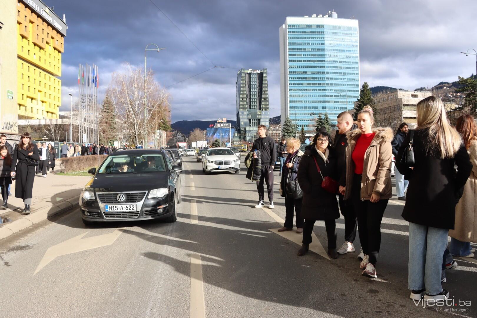 Blokirana je glavna saobraćajnica i kompletna raskrsnica.