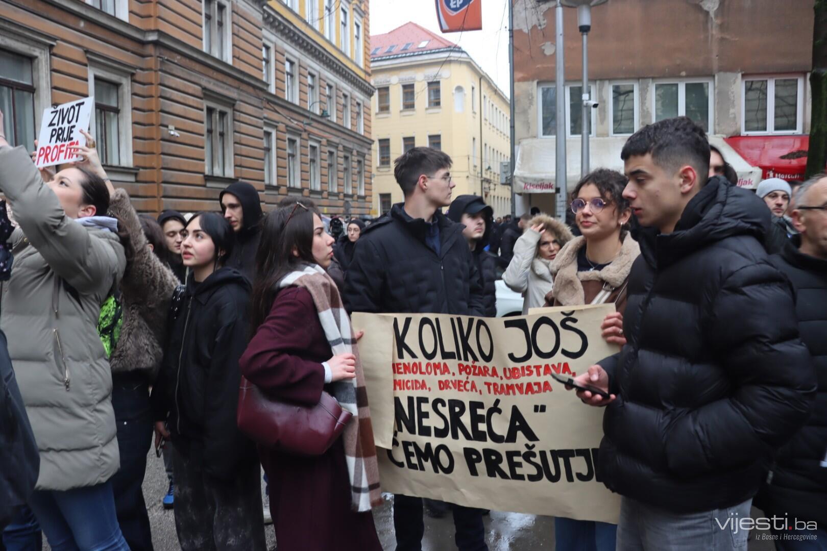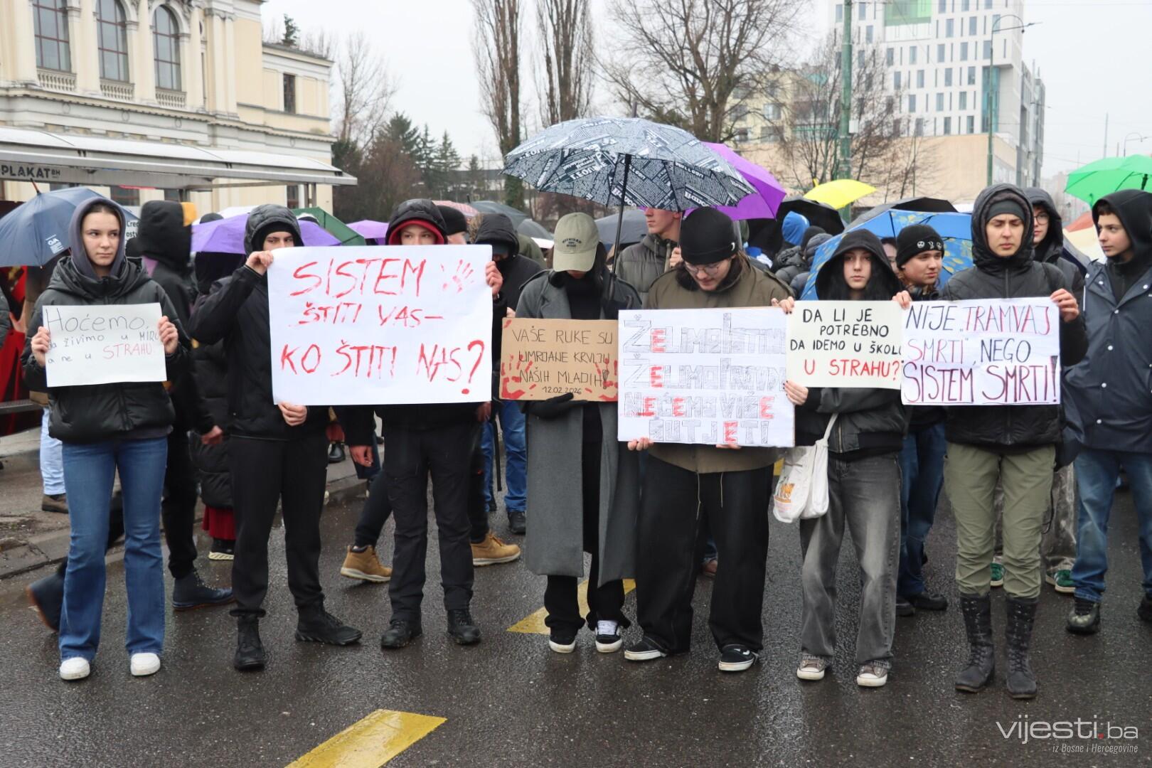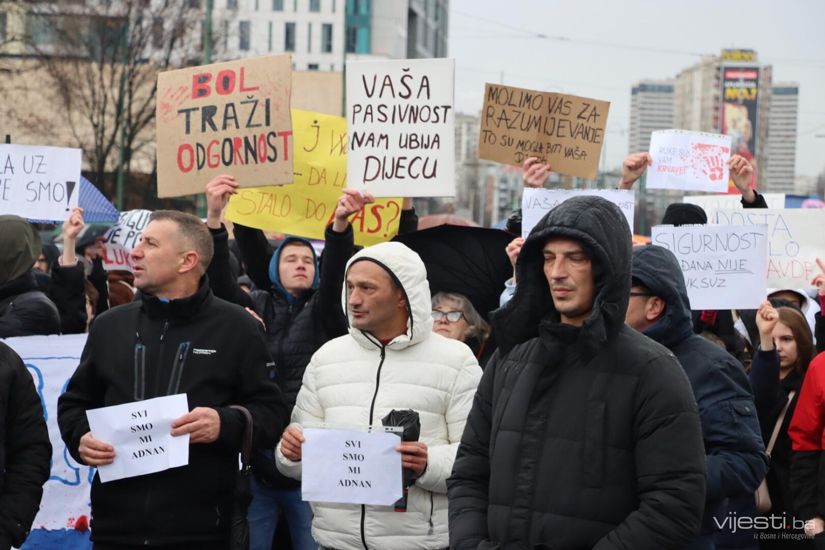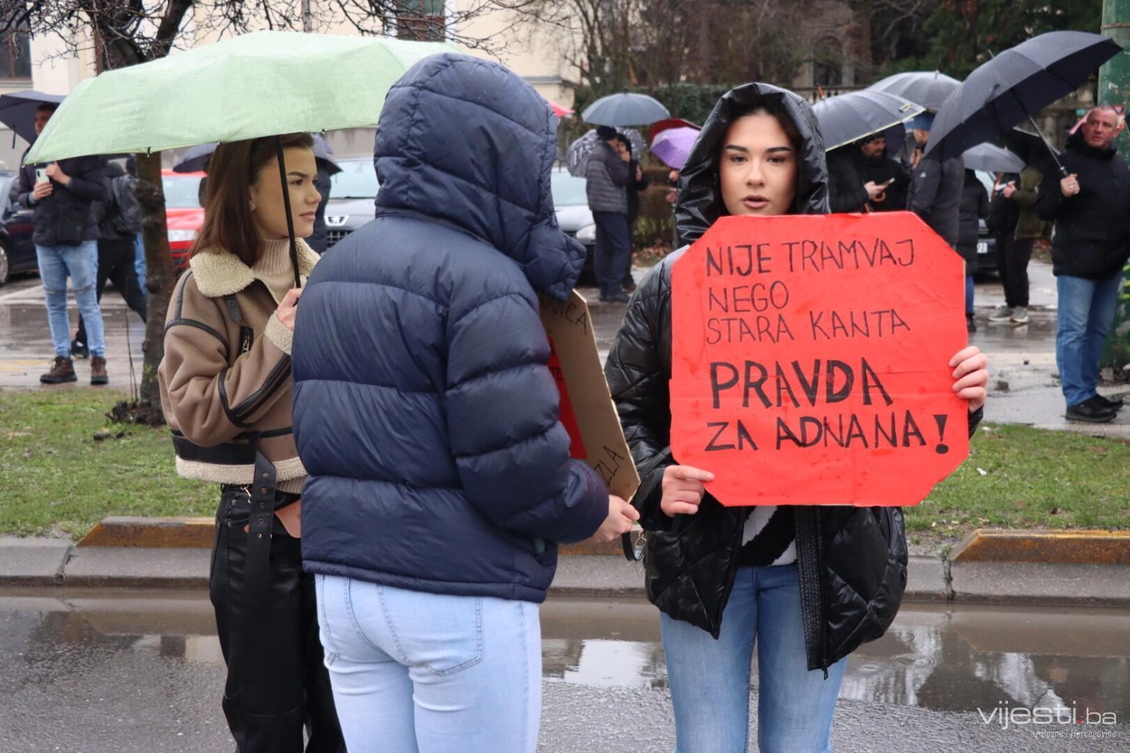 12:46 - Okupljeni su krenuli prema Općoj bolnici. Traže pravdu i za vozača tramvaja. "Pravda za Adnana", skandiraju dok idu ka Općoj bolnici blokiranim ulicama Sarajeva.