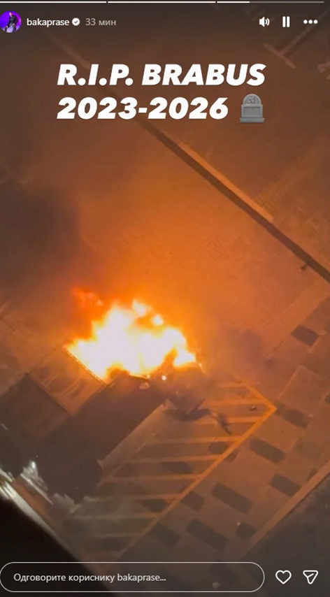 Naime, Baka Prase je na Instagramu podijelio snimak sa terase, dok je snimao svoj zapaljeni automobil.