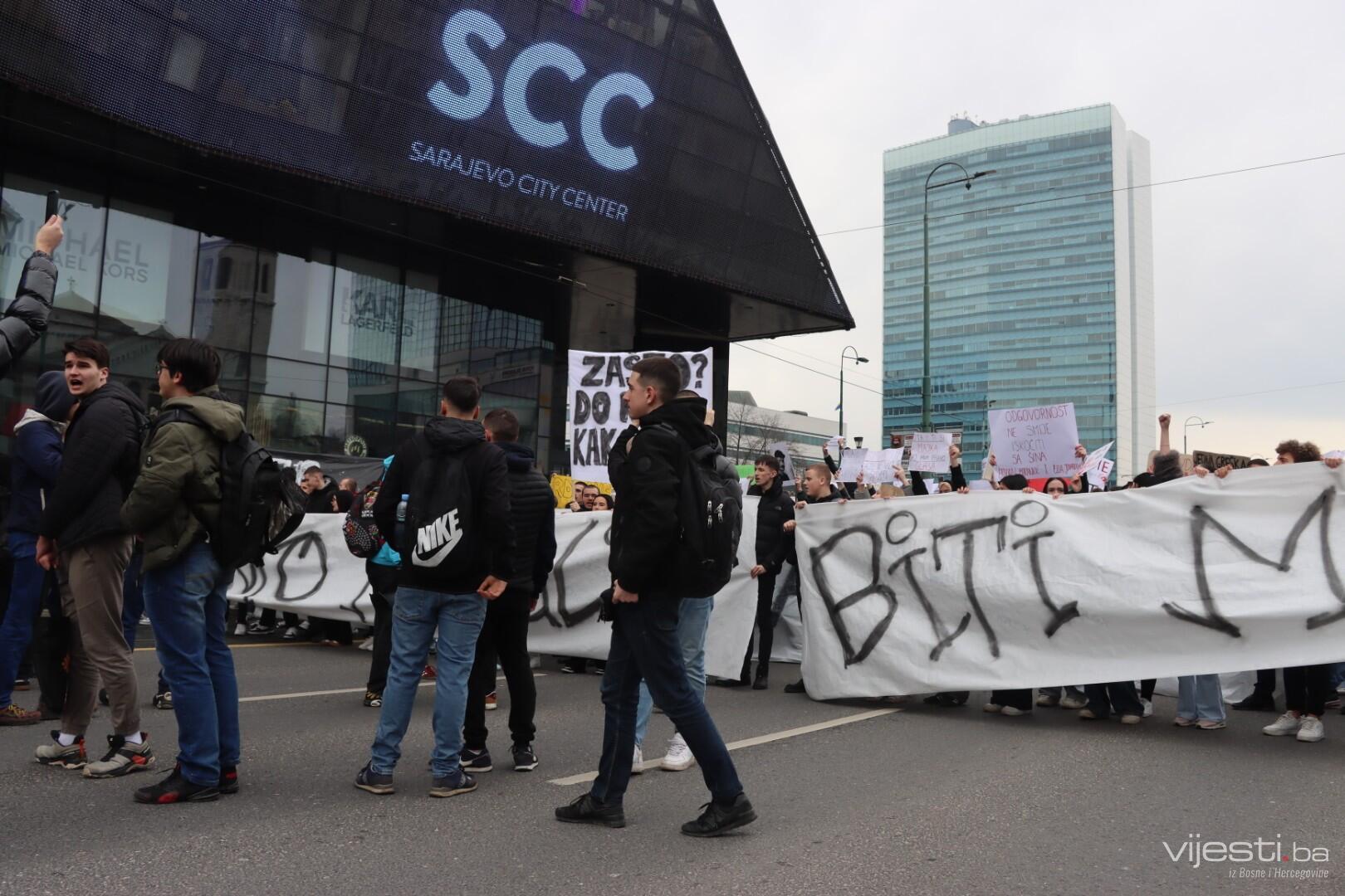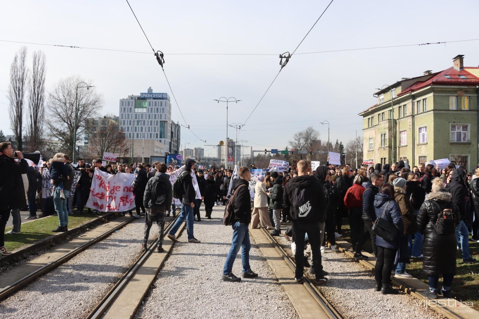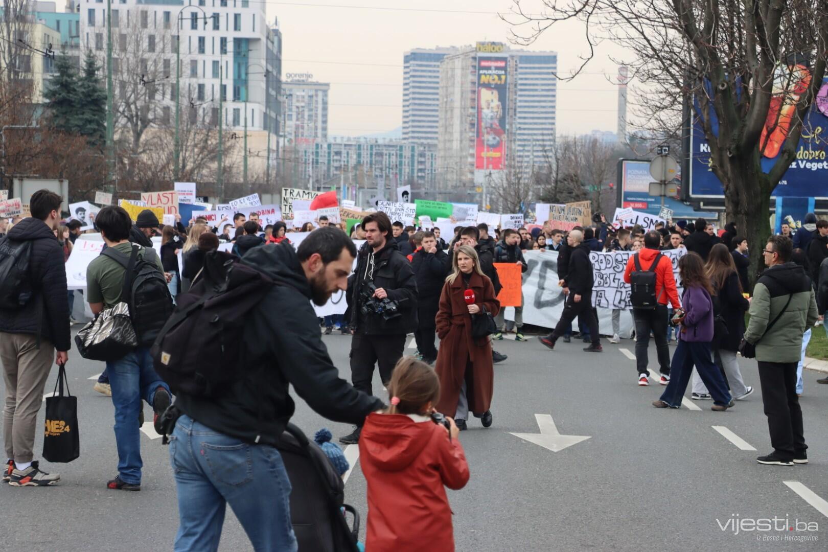 13:25 - Građani su u ovim trenucima stigli do Skenderije, odakle idu prema Tužilaštvu