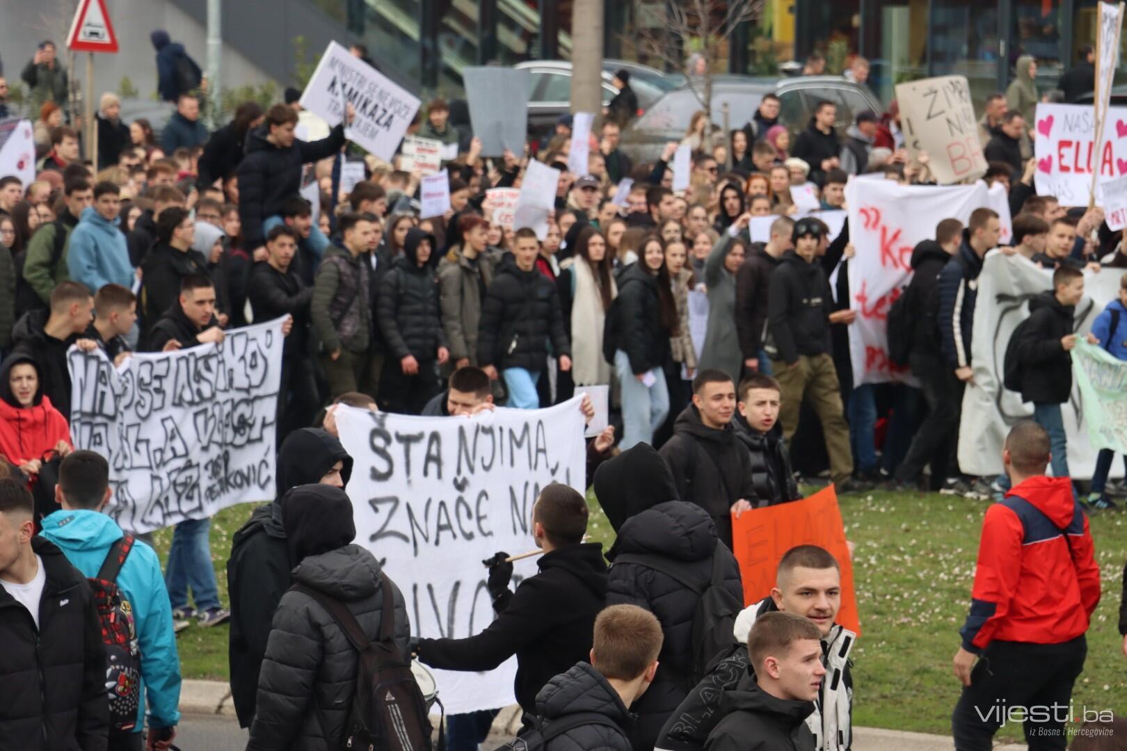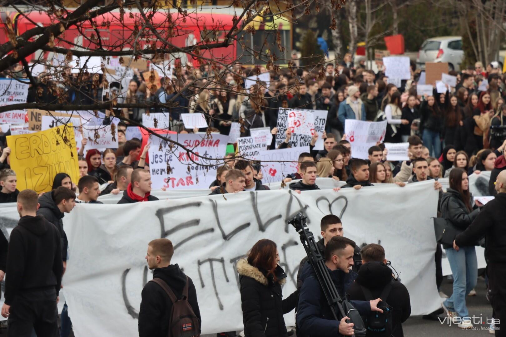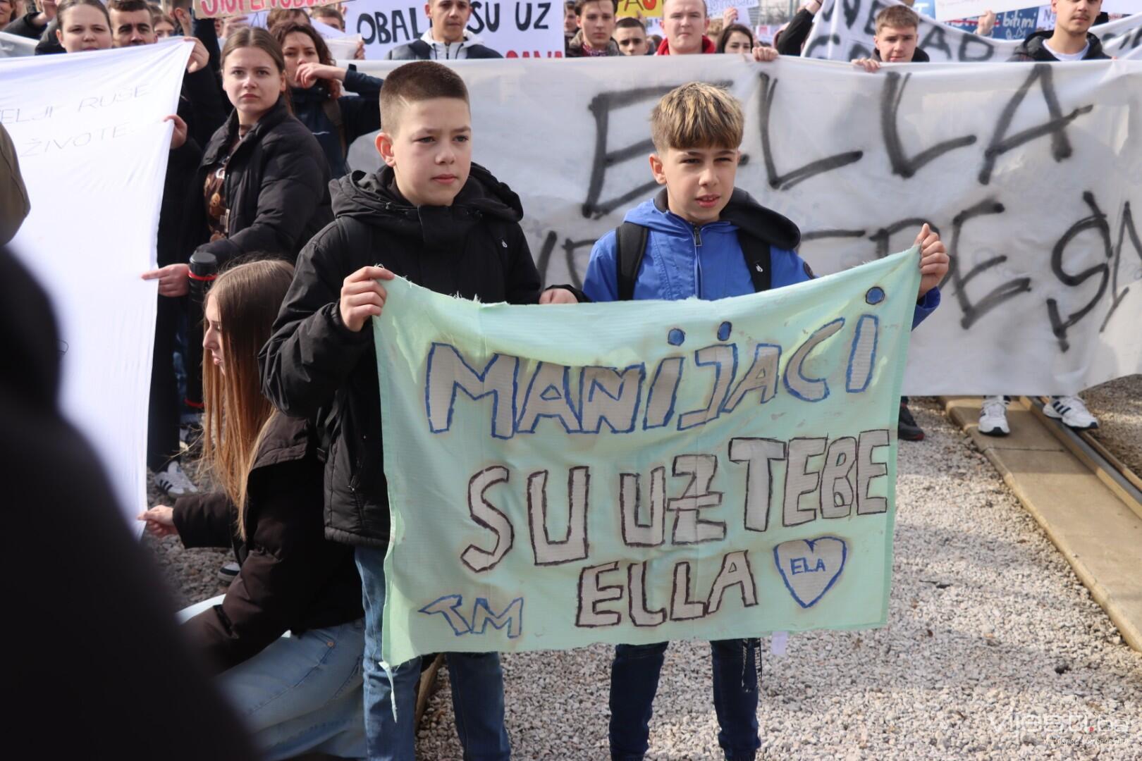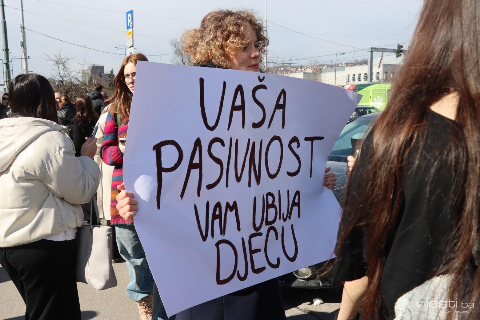 12:20 - "Sarajevo grade, šta ti papci rade". Ovo su poruke sa današnjih transparenata. Održana je minuta šutnje, a uskoro će kolona krenuti prema Općoj bonici gdje se liječi Ella Jovanović.