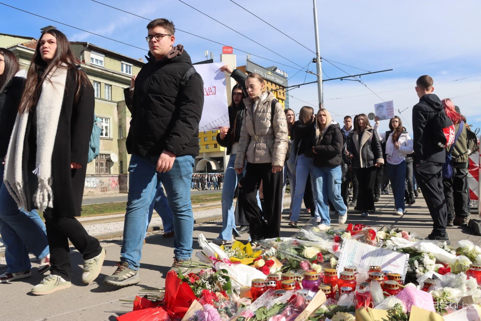Među njima su se mogle vidjeti poruke: „Ne ubija tramvaj, već nemar“, „Borimo se za minimum, pravdu i sigurnost“, „Hoćemo odgovornost, ne tišinu“, „Šutnja je saučesništvo“ i „Majke ne bi smjele učiti kako se pali svijeća za svoje dijete“.