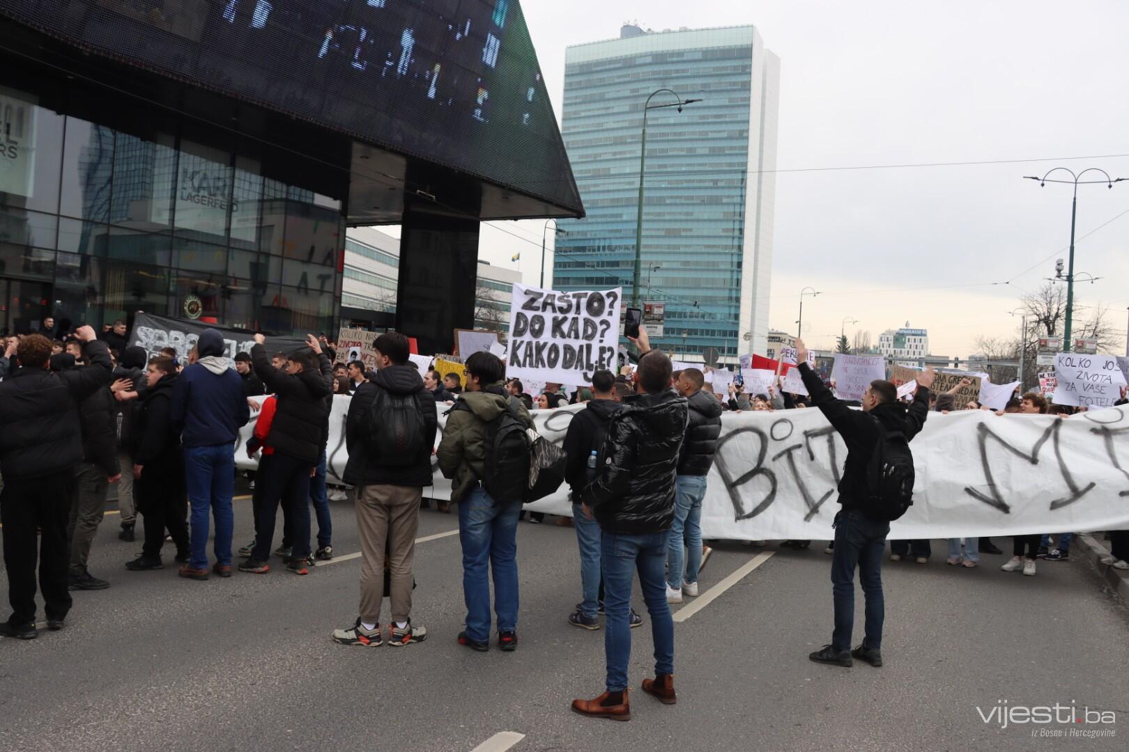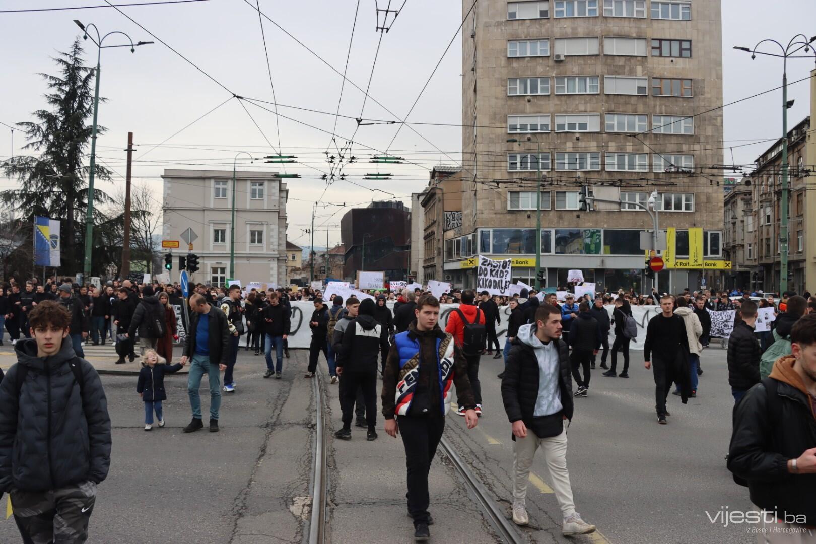 Okupljeni su stigli na Marijin Dvor, idu prema Tužilaštvu. Vijesti.ba