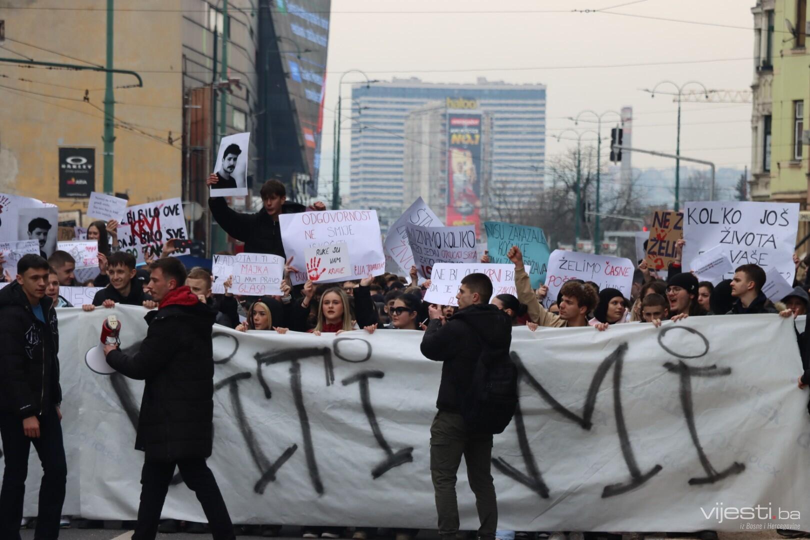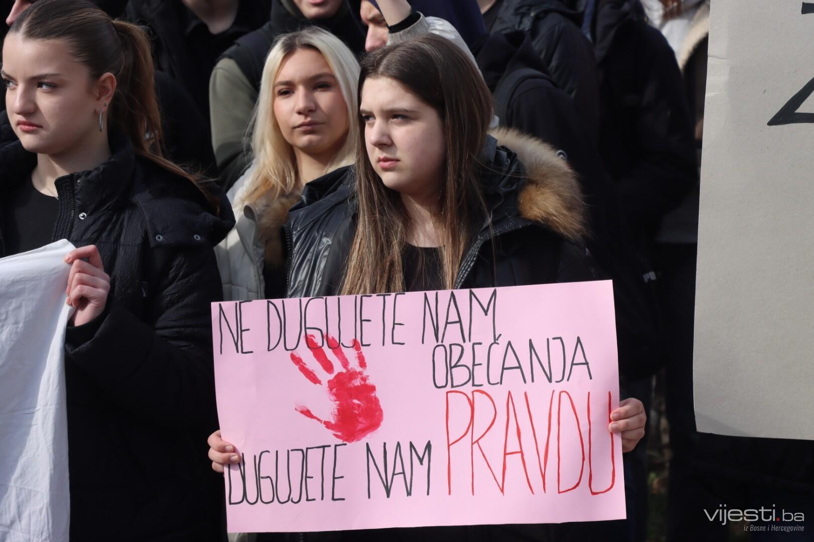 Veliki broj studenata i učenika srednjih škola okupio se ispred Zemaljskog muzeja, odakle su krenuli u šetnju prema Općoj bolnici Prim. dr. Abdulah Nakaš kako bi pružili podršku Elli i njenoj porodici.