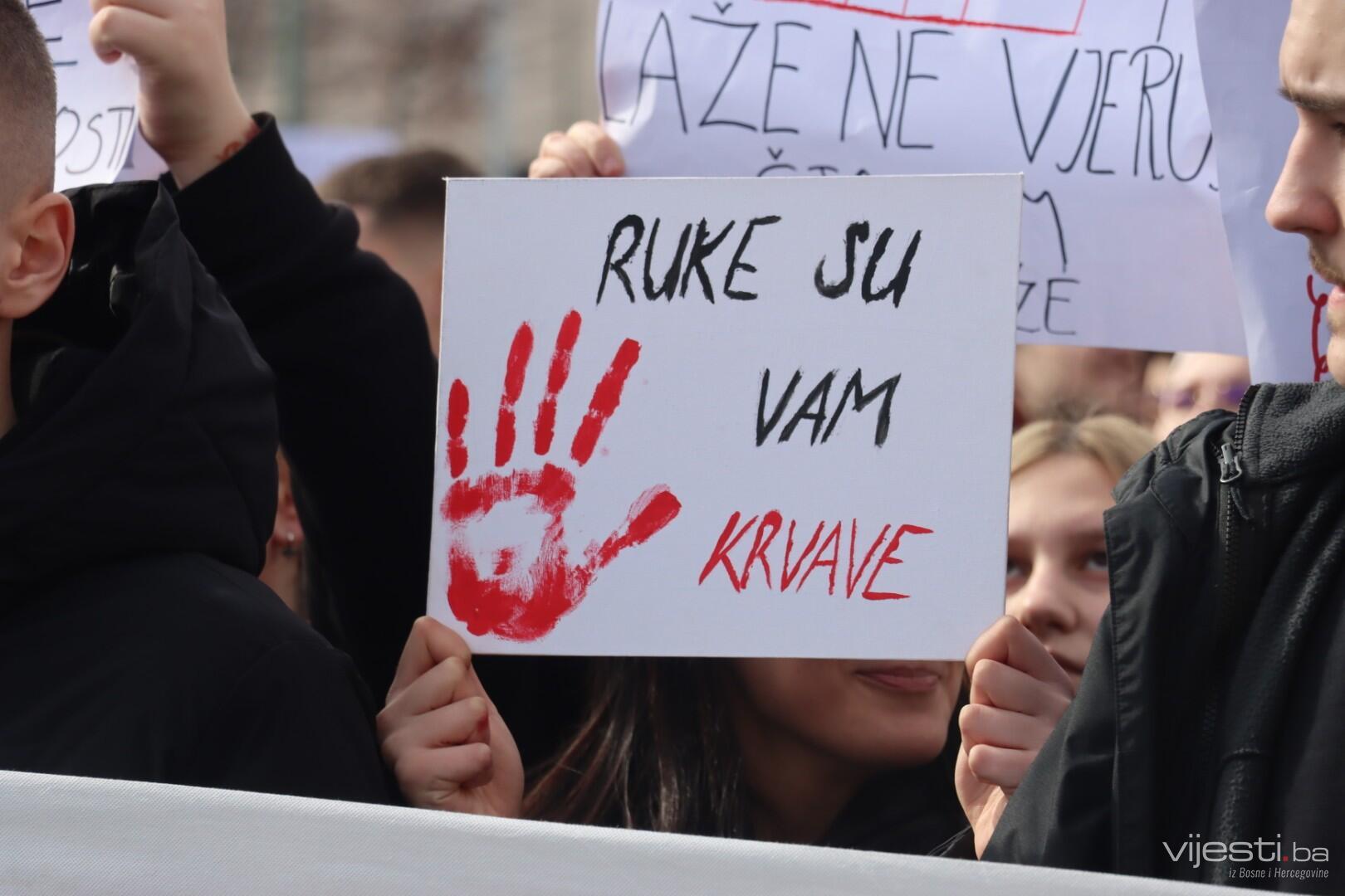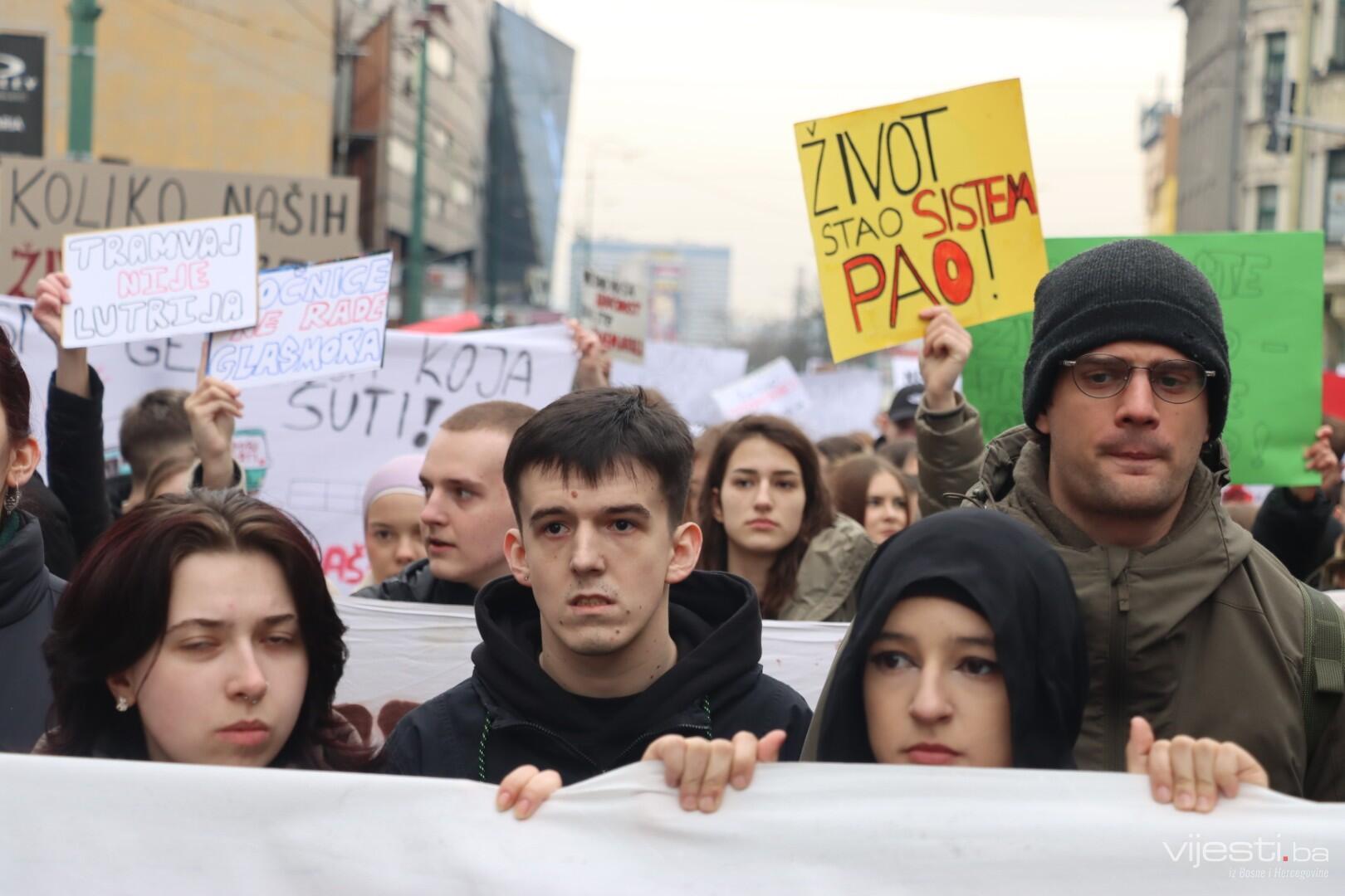 Tokom protesta mladi su nosili transparente sa snažnim porukama upućenim nadležnima.