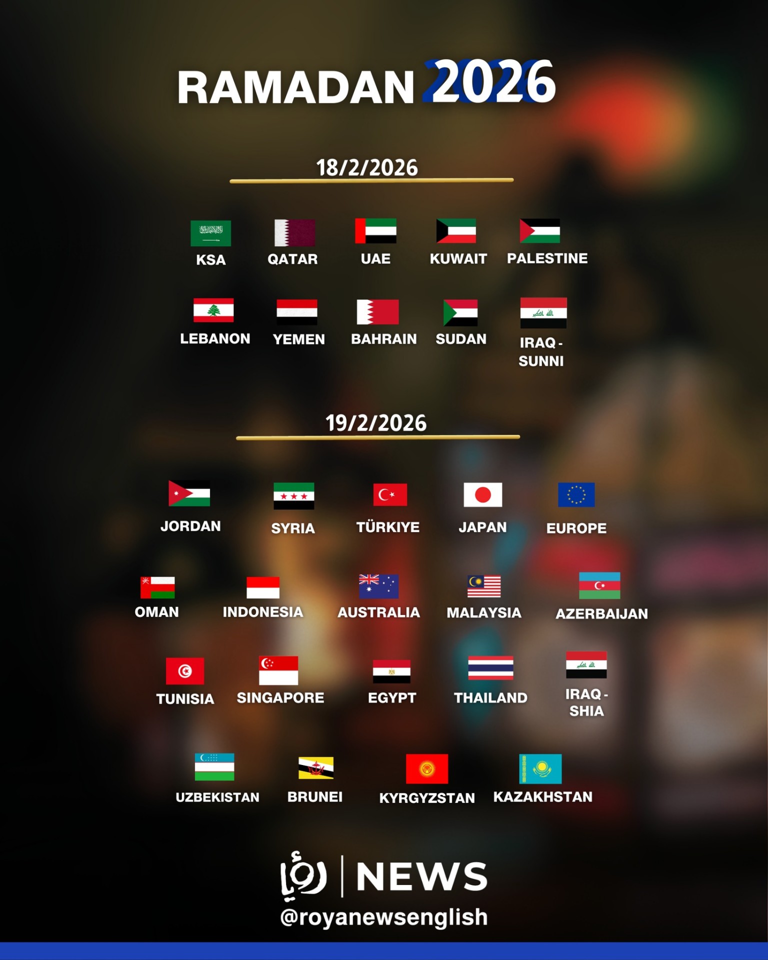 Saudijska Arabija potvrdila je u utorak da sveti mjesec ramazan počinje u srijedu, 18. februara, nakon što je u Kraljevini viđen mlađak koji označava početak mjeseca, prenijela je Al Arabiya.