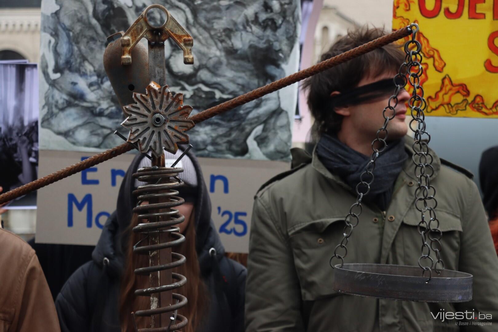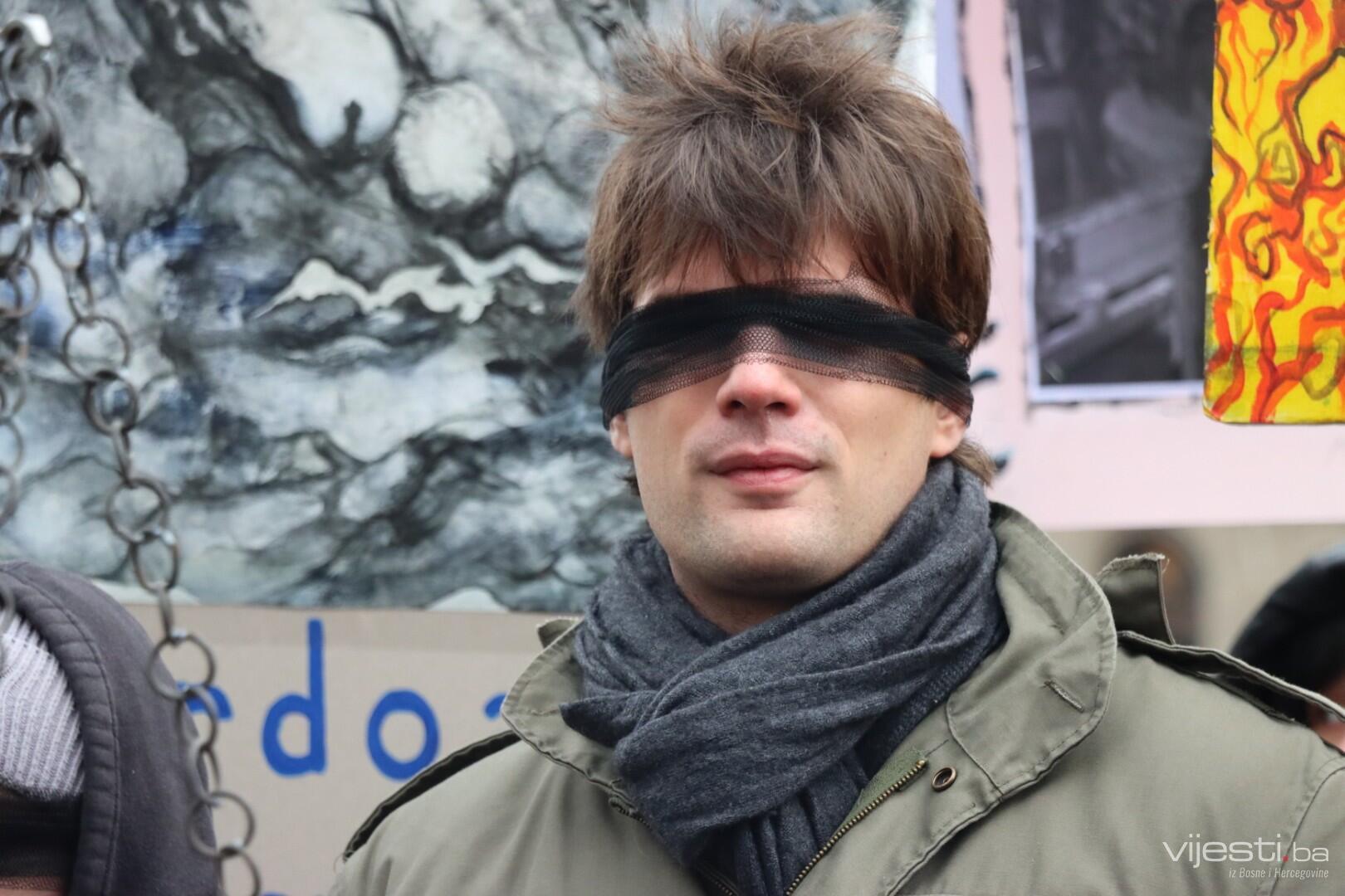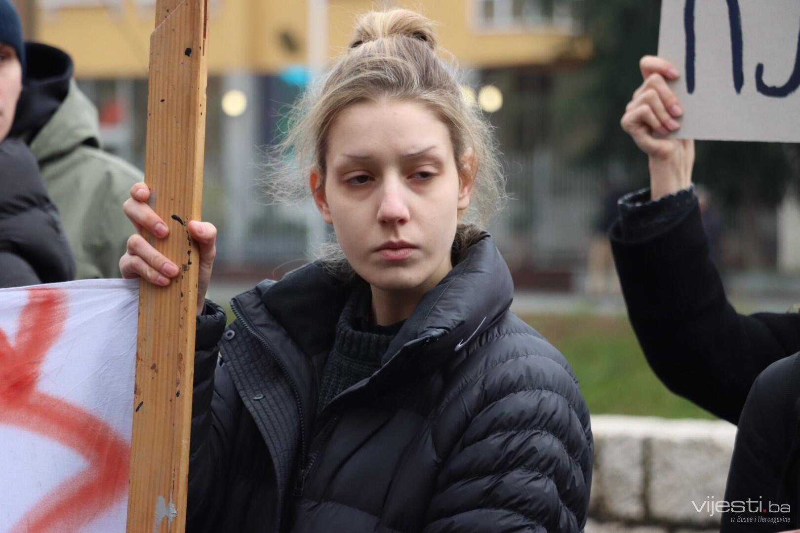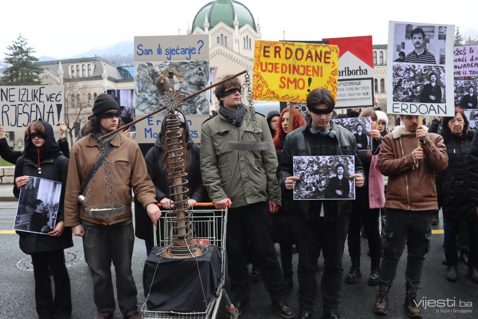 Kolege tragično stradalog Erdoana (23) pojavili su se pred Akademijom sa crnim povezima oko očiju i mnogim porukama na kojima, između ostaloga, piše: