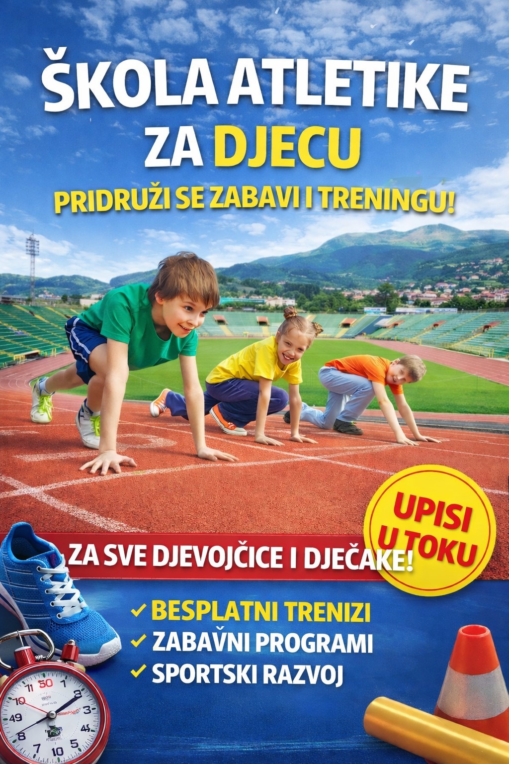 Pod pokroviteljstvom Općine Centar, a u realizaciji Javne ustanove „Centar za sport i rekreaciju“, od danas počinju prijave za besplatnu školu atletike.