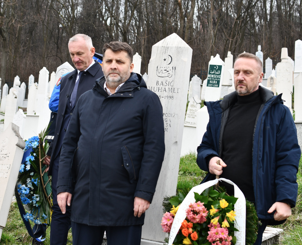 Članovi porodice, prijatelji i kolege te delegacije Ministarstva unutrašnjih poslova Kantona Sarajevo, Uprave policije i Sindikata policije Kantona Sarajevo, danas su položili cvijeće na mezarju „Obad“ i odale počast kolegi, policijskom službeniku Mahmutu Traki, koji je preminuo na današnji dan prije 28 godina.