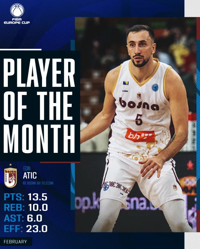 Atić je u februaru predvodio sarajevski tim s prosjekom od 13,5 poena, 10,0 skokova i 6,0 asistencija po utakmici, dok je u drugoj fazi takmičenja u prosjeku bilježio 13,2 poena, 8,0 skokova i 4,0 asistencije.