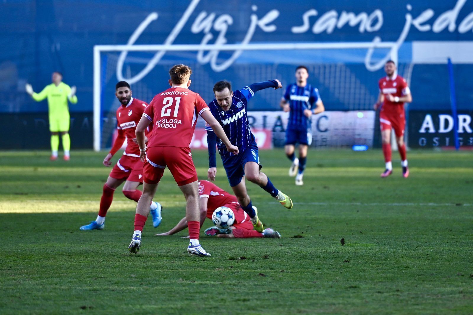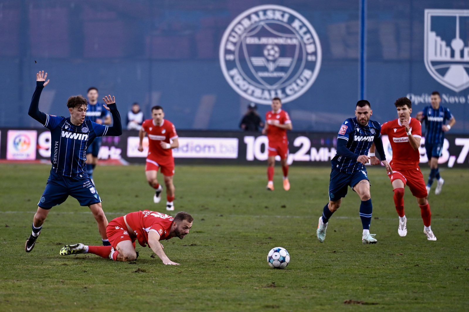 U 79. minuti najbolja šansa za Plave. Odinaka je centrirao, Erić pomalo nespretno intervenisao i skrenuo loptu u stativu da bi je Božičković onda izbio s gol linije.