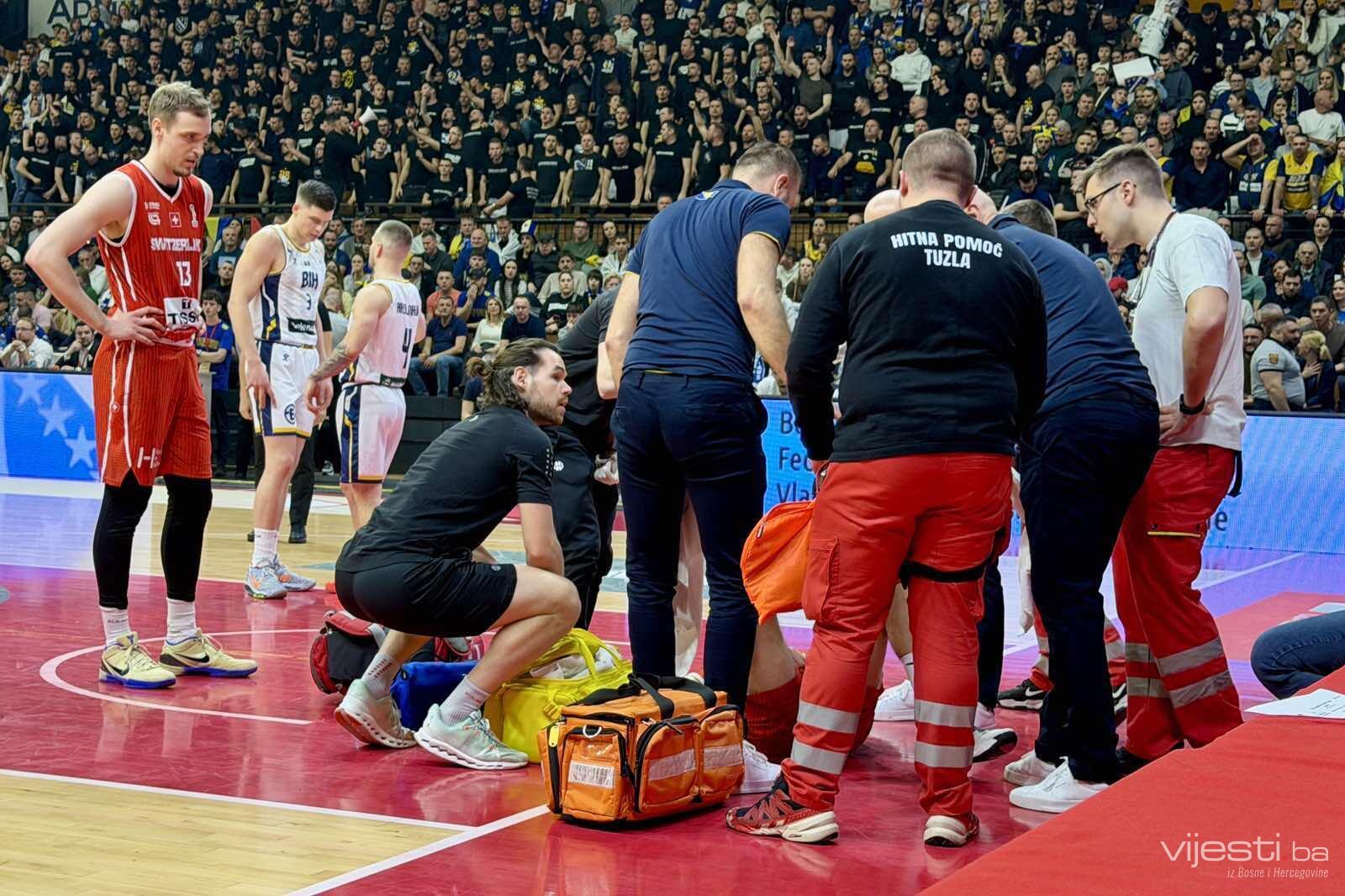 20' Sigurni Švicarci sa linije slobodnih bacanja, Sulejmanović 1/2 sa penala. Simanić sjajno zakucavanje i šesti njegov poen večeras.
