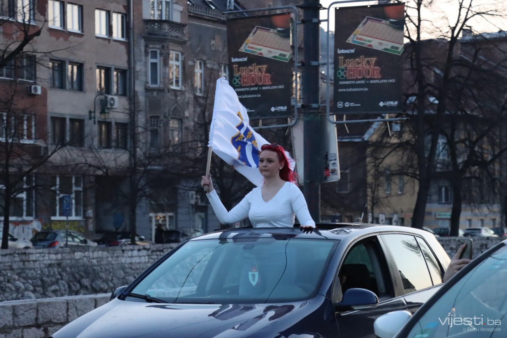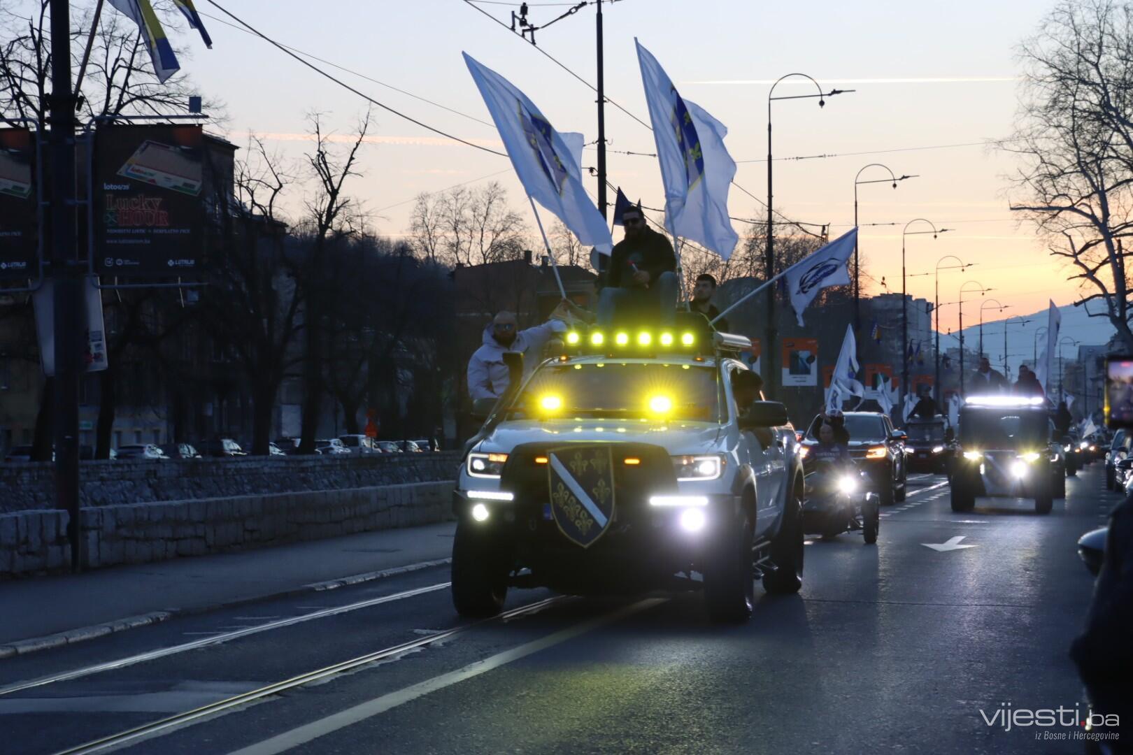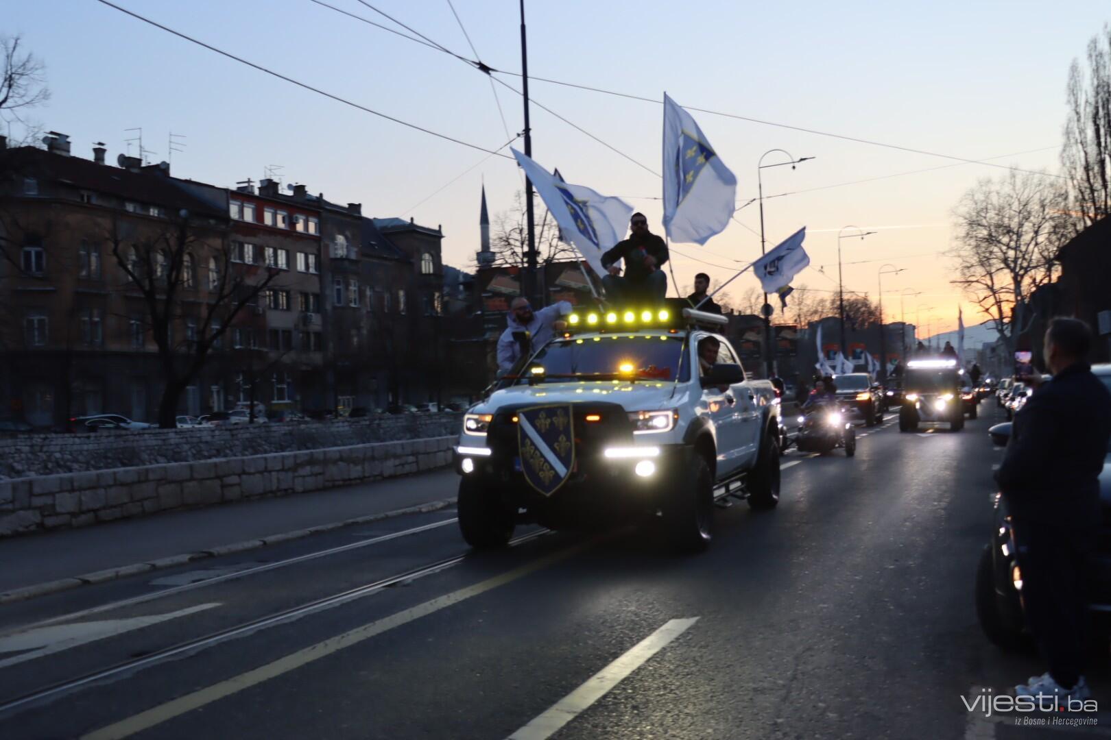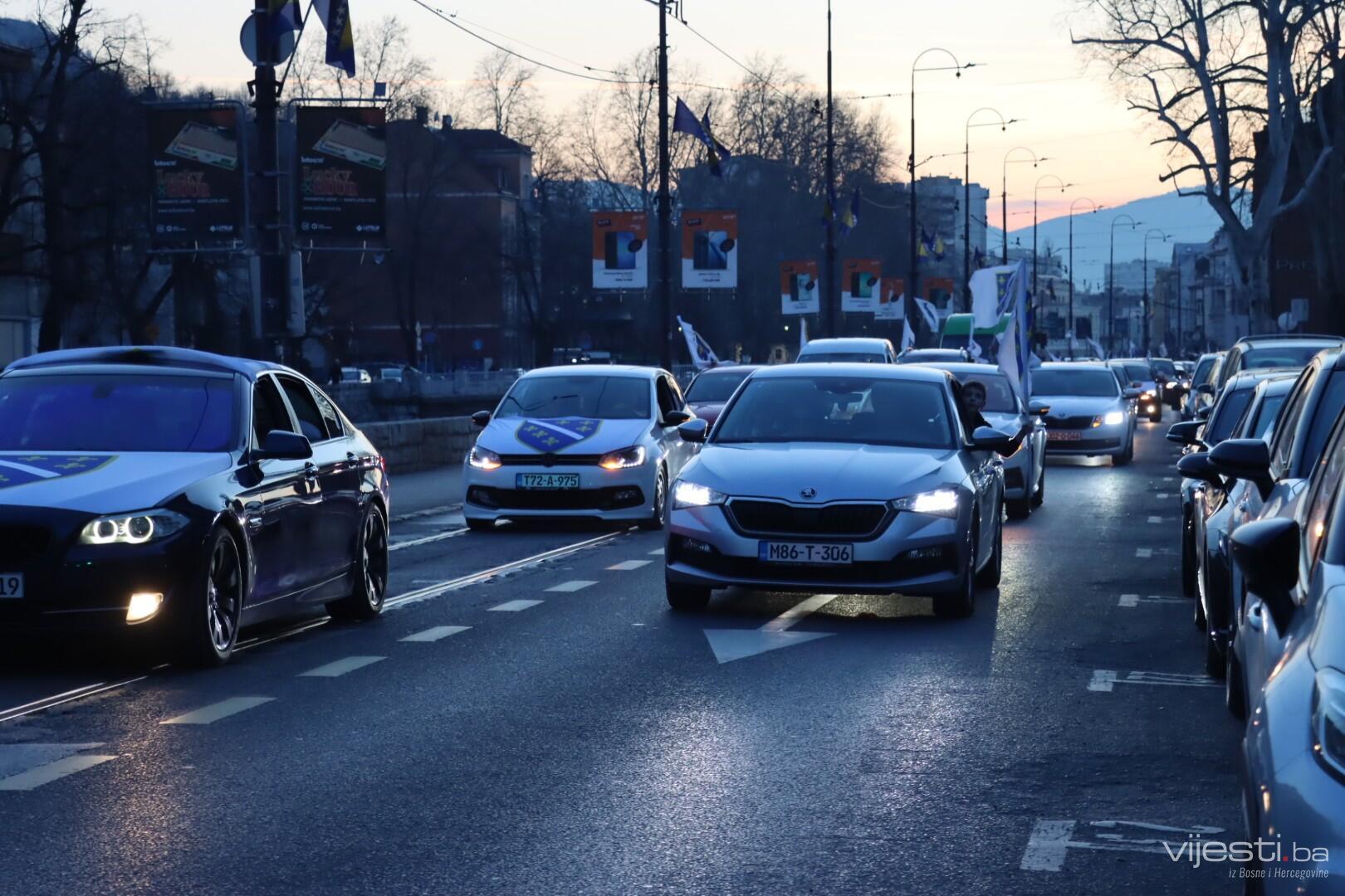 Kolona od više stotina automobila krenula je sa Stupa prema centru grada. Glavna gradska saobraćajnica pretvorila se u rijeku zastava, sirena i emocija. Krug kroz grad bio je više od vožnje, pokret zajedništva, poruka da se historija pamti i da se simboli ne zaboravljaju.